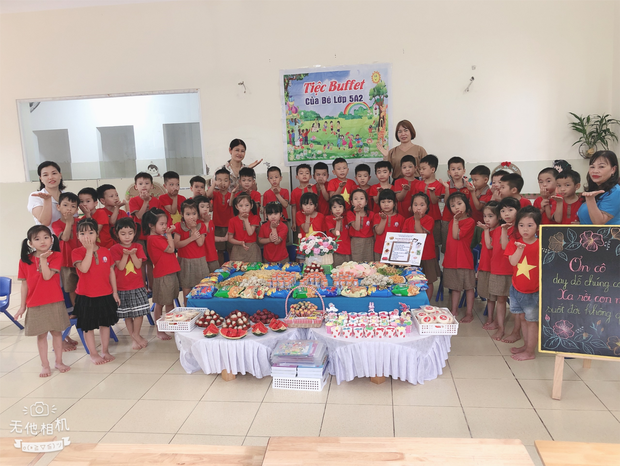 Hòa chung không khí vui tươi, phấn khởi chúc mừng các thành tích mà cô trò đã đạt được trong năm học vừa qua. Với các nội dung, hoạt động chuẩn bị tổng kết năm học 2023-2024 và hướng tới chào mừng ngày Quốc tế thiếu nhi 01/06. Sáng ngày 24/05/2024, trường Mầm non Hồng Thái đã tổ chức bữa tiệc Buffet cho trẻ toàn trường tham gia. Để tổ chức thành công bữa tiệc, nhà trường đã chuẩn bị chu đáo từ xây dựng kế hoạch tổ chức, truyền thông tới các bậc phụ huynh, xây dựng thực đơn với các món ăn đa dạng, phong phú, phù hợp độ tuổi, lựa chọn thực phẩm tươi sạch, an toàn... Cùng với sự quan tâm của các cô trong BGH, sự tài năng của các cô nhân viên nuôi dưỡng, sự khéo léo của các cô giáo đã tạo cho trẻ một bữa tiệc đẹp mắt, hấp dẫn với các món ăn ngon, đủ chất dinh dưỡng và calo cho trẻ. Các bé rất hào hứng tham gia cùng các cô giáo chuẩn bị cho bữa tiệc. Khi vào khai tiệc, các bé được cô giáo giới thiệu về ý nghĩa của buổi tiệc, giới thiệu các món ăn, các chất dinh dưỡng tốt cho cơ thể... Trẻ được tự lấy món ăn mình thích và cùng các bạn lần lượt thưởng thức tất cả các món ăn. Bé nào cũng thể hiện sự thích thú với bữa tiệc, đón nhận các món ăn trong niềm vui phấn khởi, ăn ngon miệng và ăn hết suất.