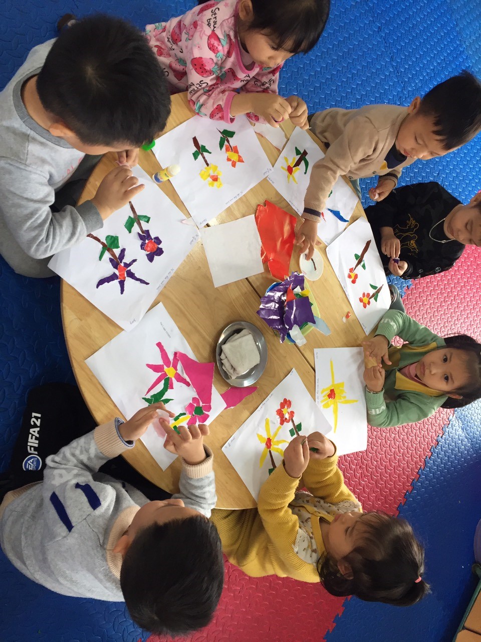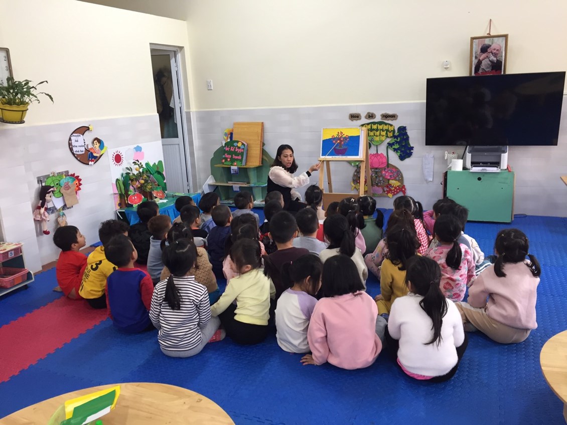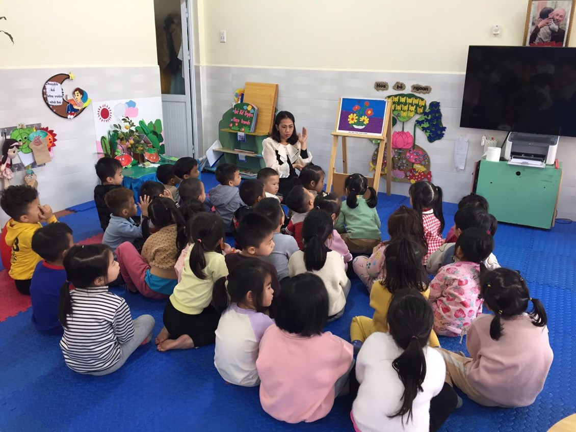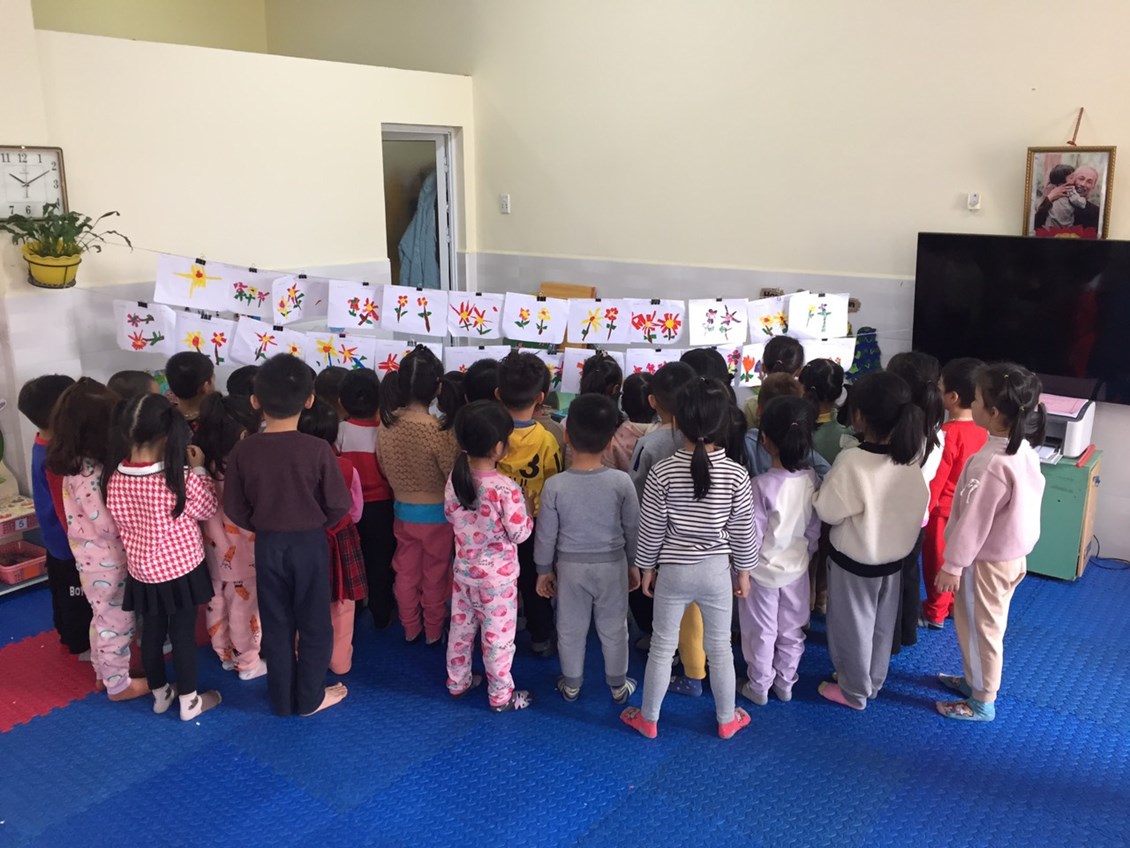 Hoạt động học: Xé dán hoa mùa xuân - Lớp 4 tuổi B3