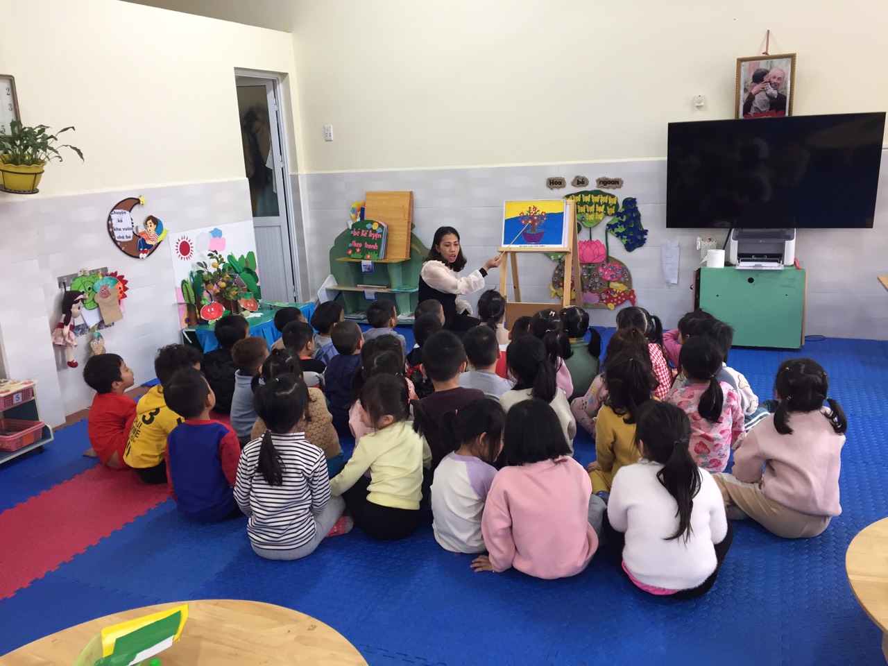 - Hôm nay cô giáo dạy các con hoạt động: “Xé dán hoa mùa xuân”.