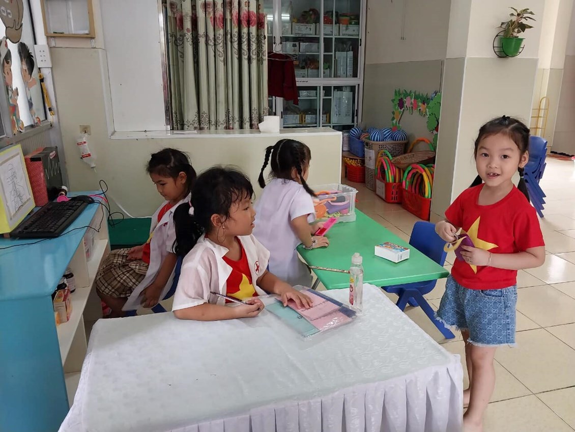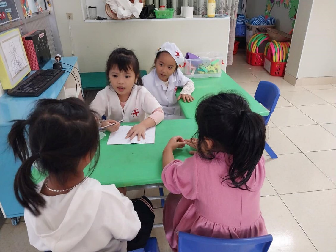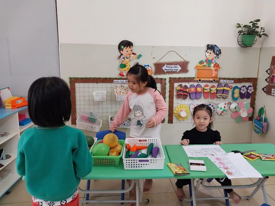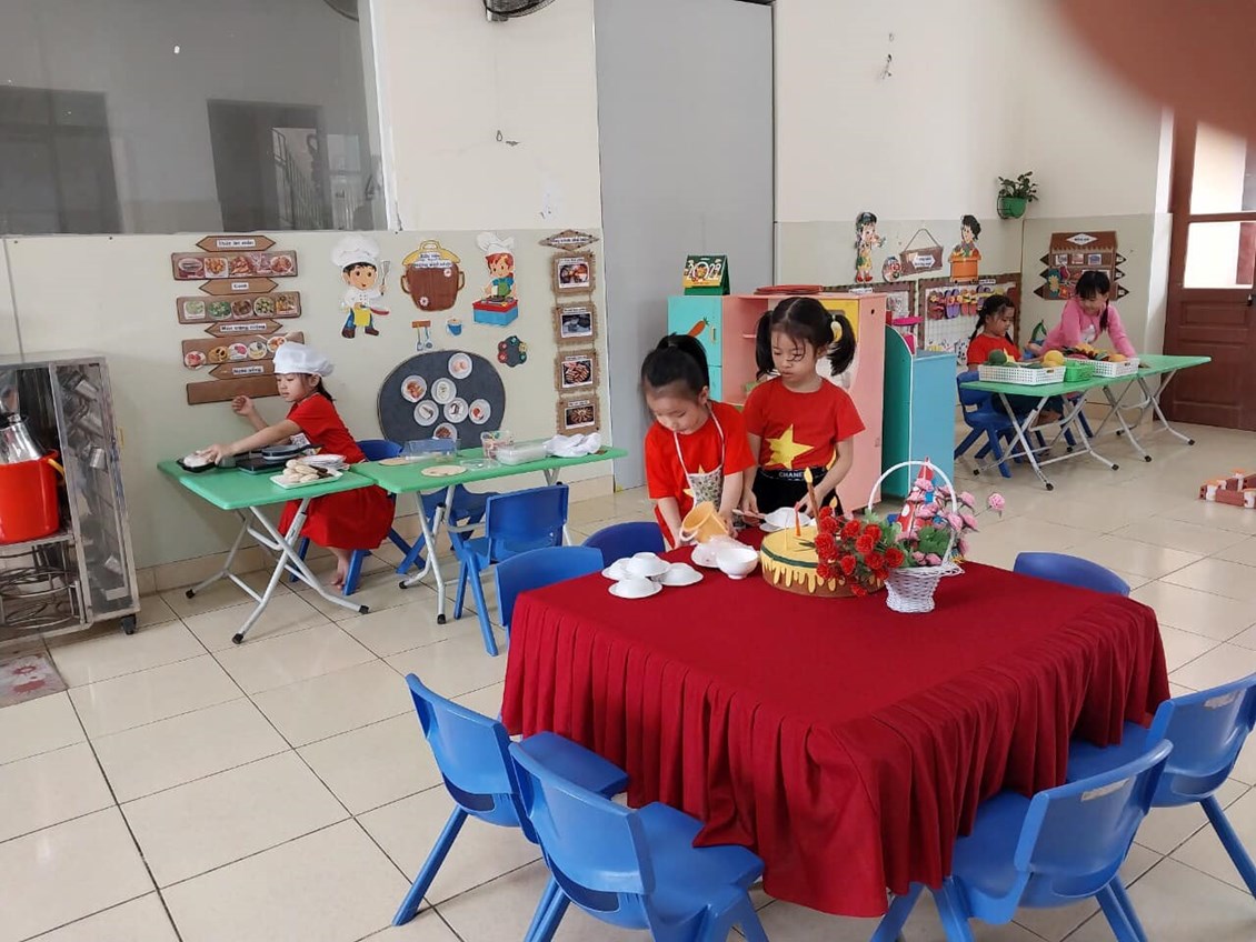 lĩnh hội kiến thức mới theo Chương trình GDMN do Bộ GD ban hành bé bước vào Hoạt động học, tiếp theo bé được các cô cho uống sữa giữa giờ và tham gia các trò chơi trong góc chơi. Tại đây bé được ôn luyện củng cố các kỹ năng thông qua các bài tập, trò chơi. Kết thúc giờ chơi bé tự rửa tay-mặt và thưởng thức bữa trưa với đầy đủ chất dinh dưỡng. Sau giờ ăn bé tự biết đánh răng và súc miệng bằng nước muối nữa nhé. Tại lớp bé được ngủ đủ giấc, khi ngủ dậy bé biết giúp cô cất đồ dùng ngăn nắp gọn gàng, rồi bé ăn chiều cùng các bạn. Sau ăn chiều bé lại được cô cho chơi các trò chơi để ôn luyện củng cố các kiến thức đã học.