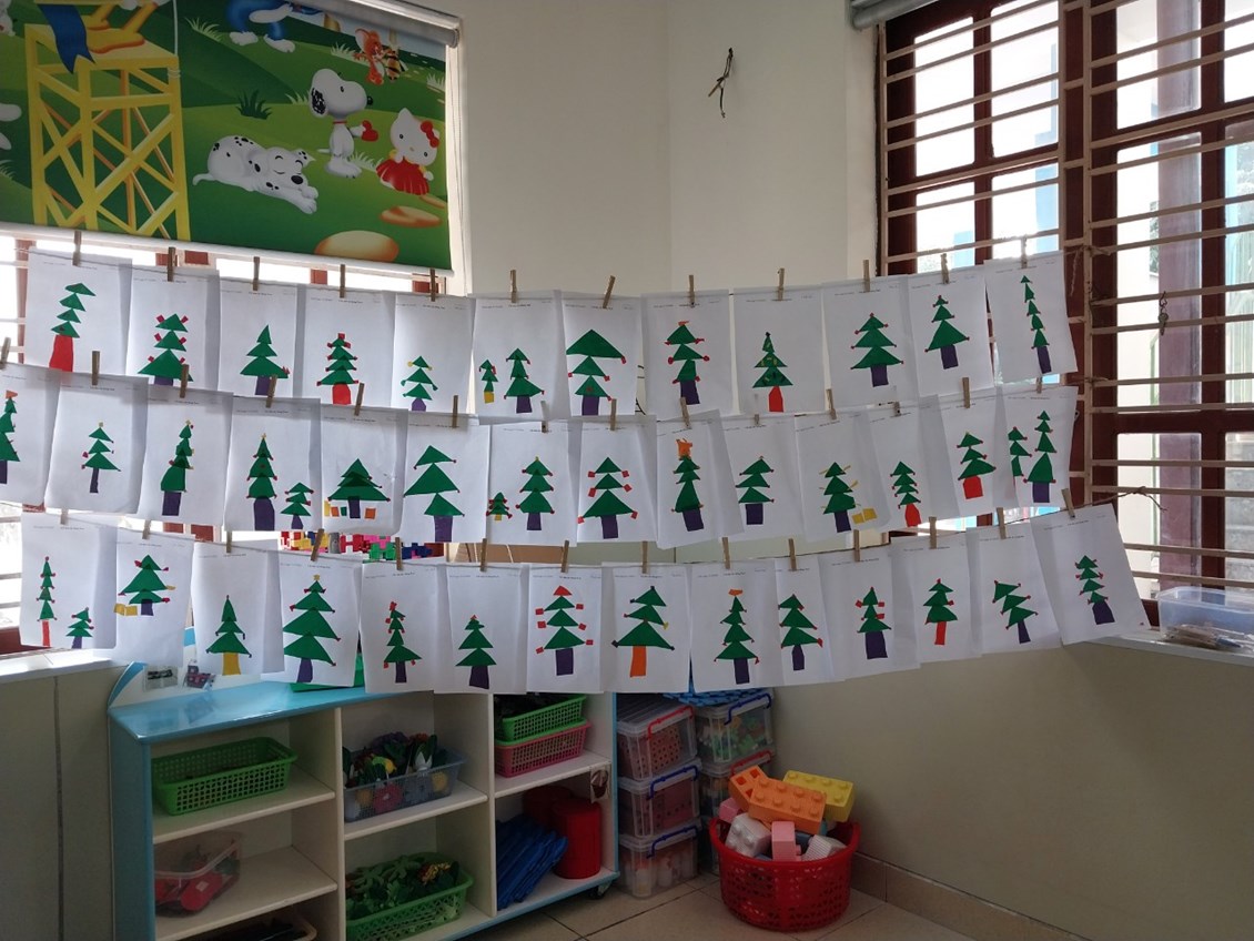 Trong không khí tưng bừng chào đón Noel cô và các bé lớp 5A1 cũng hòa mình vào lễ hội, thông qua Hoạt động Học "Cắt dãn cây Thông Noel". Các bé đã dán được những cây thông rất đẹp phải không các bạn, trên cây thông còn có những ngôi sao lấp lánh và những món quà rất xinh.