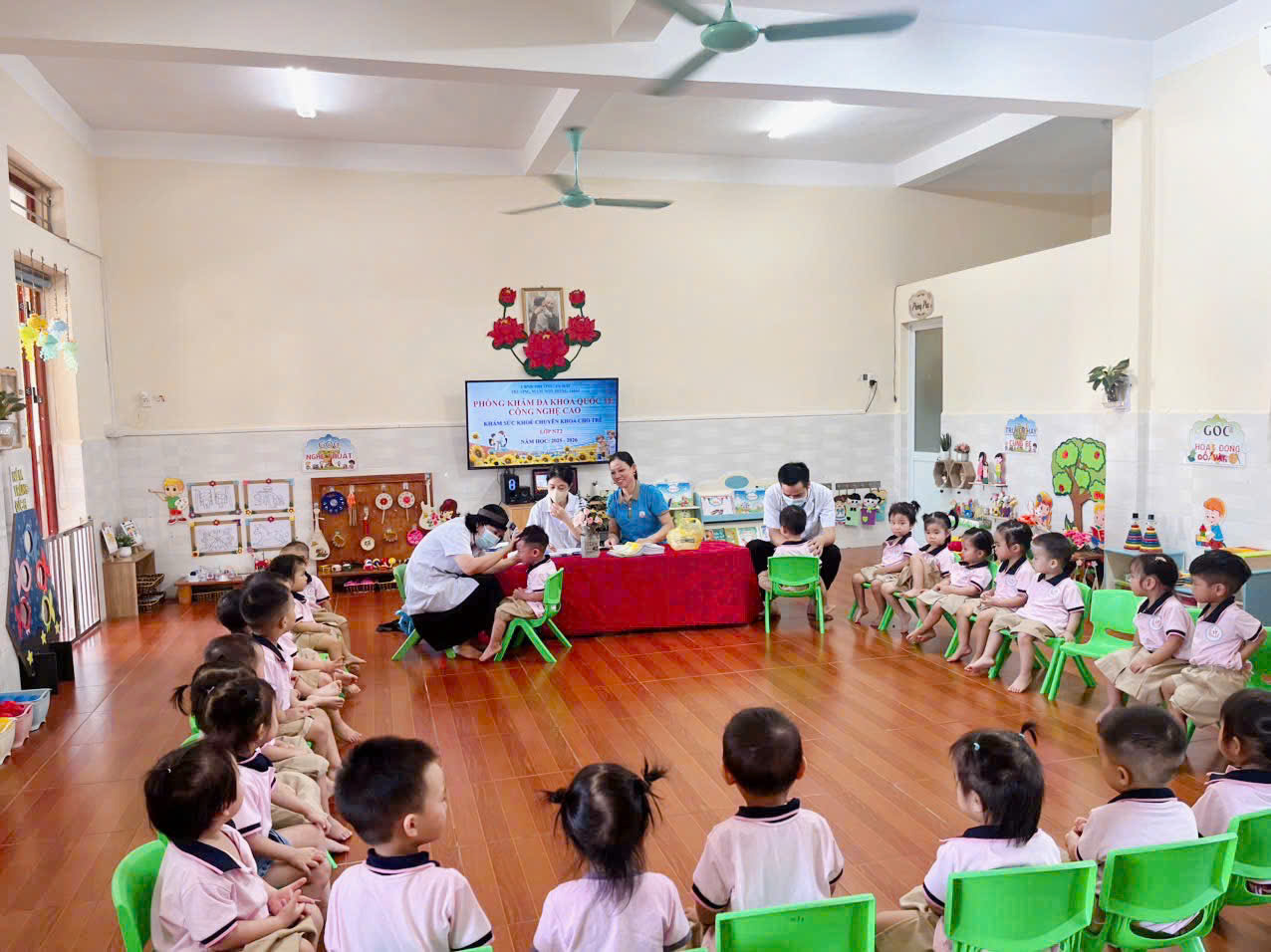 Sáng ngày 19/9/2025, Trường Mầm non Hồng Thái phối hợp cùng đội ngũ y bác sĩ của phòng khám đa khoa Nam Sơn đã tổ chức buổi khám sức khoẻ tổng quát cho các trẻ. Trong buổi khám, các bé được kiểm tra đầy đủ các chuyên khoa: mắt, tai - mũi - họng, răng - hàm - mặt... Đội ngũ y bác sĩ tận tình thăm khám, ghi chép cẩn thận vào sổ theo dõi sức khoẻ, tạo không khí gần gũi, thân thiện để các con cảm thấy thoải mái, hợp tác. Đây la hoạt động thường niên có ý nghĩa quan trọng nhằm theo dõi, đánh giá tình trạng sức khoẻ, sự phát triển thể chất của các con, đồng thời giúp phụ huynh nắm bắt kịp thời những vấn đề cần quan tâm để có biện pháp chăm sóc phù hợp.Sau đây là một số hình ảnh khám sức khoẻ của các con.