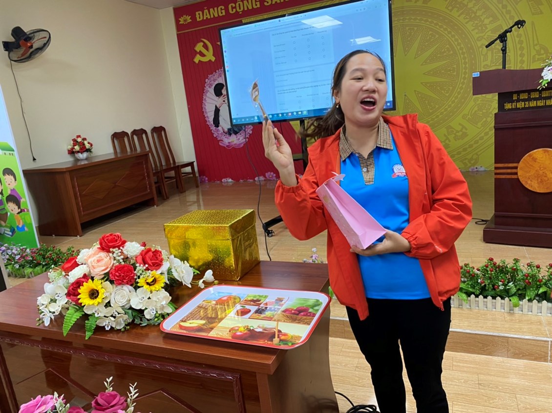+ Trò chơi cá nhân: “Chiếc hộp thông thái” với các câu hỏi liên quan đến kiến thức dinh dưỡng cho trẻ MN, VSATTP,... Mỗi NVND sẽ bắt thăm 1 câu hỏi để trả lời.