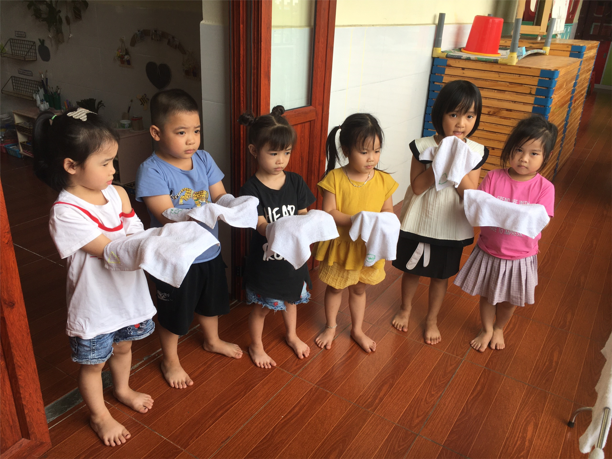 - Kĩ năng sử dụng khăn của trẻ đã thành thao hơn.