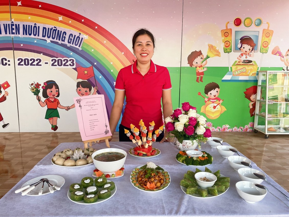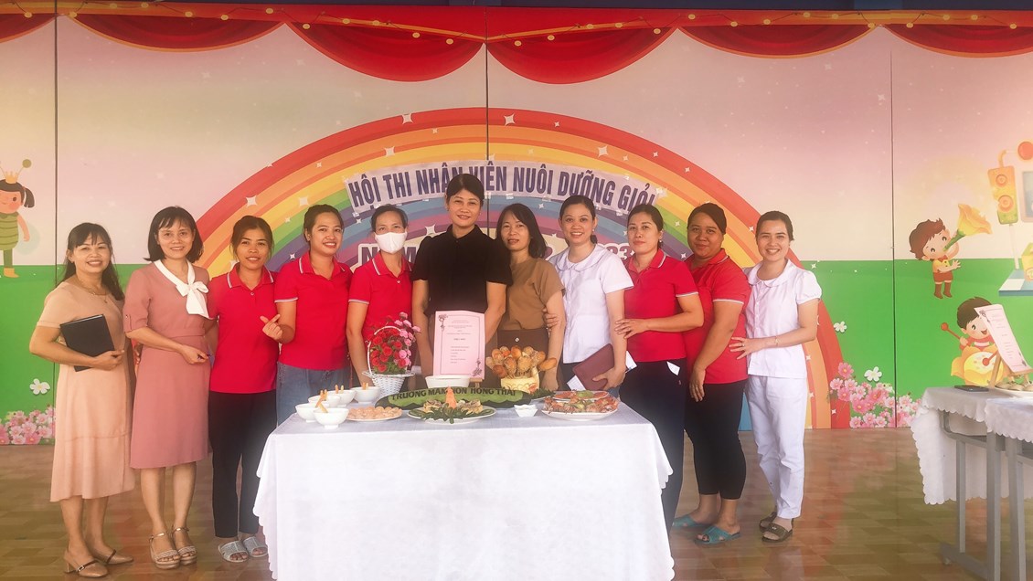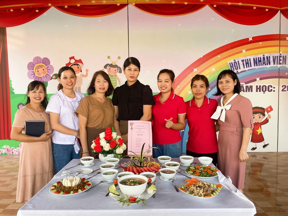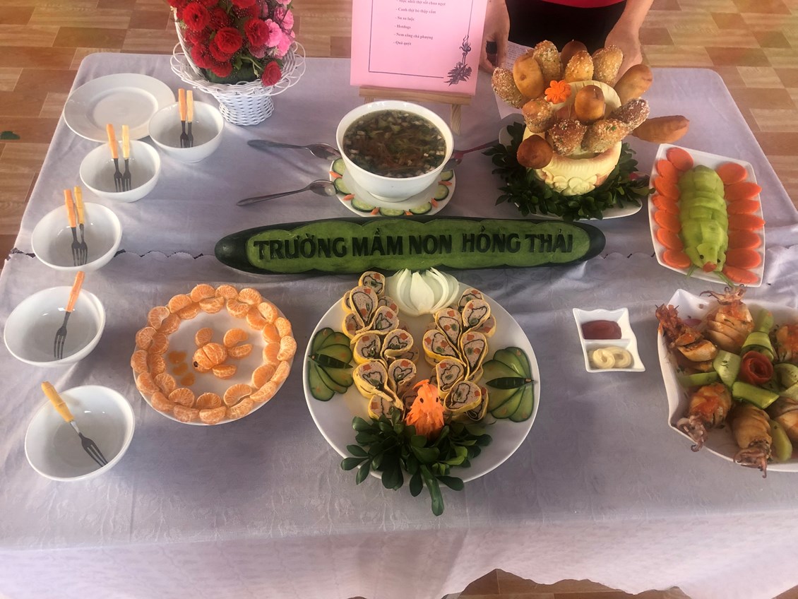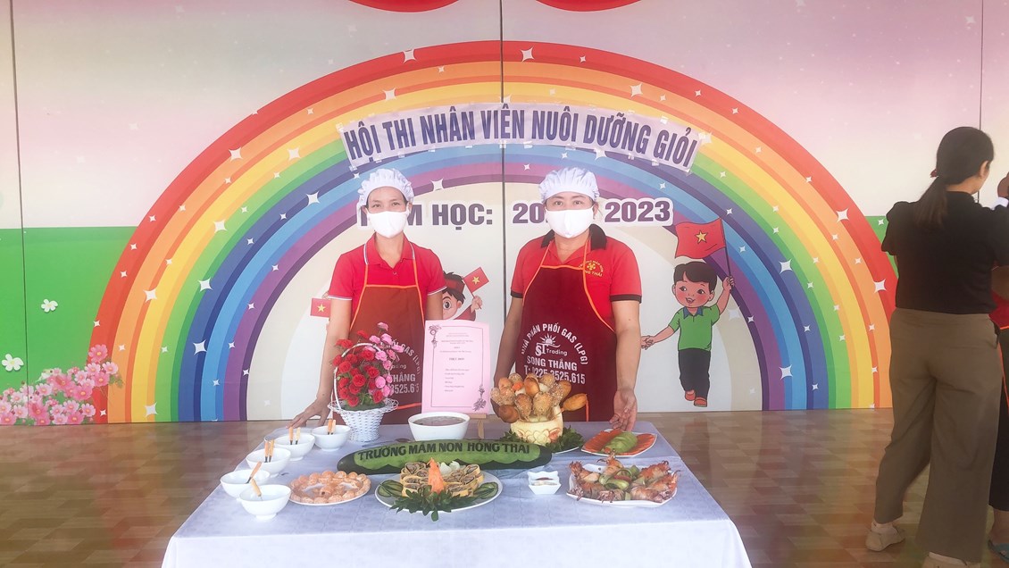 Hòa trong không khí vui tươi, phấn khởi hướng tới kỷ niệm 40 năm ngày nhà giáo Việt Nam 20/11, trường Mầm non Hồng Thái đã phát động các phong trào thi đua sâu rộng tới Cán bộ giáo viên nhân viên với các hoạt động chào mừng vô cùng ý nghĩa. Chiều ngày 8 tháng 11 năm 2022, nhà trường đã tổ chức Hội thi: “Nhân viên nuôi dưỡng giỏi” để chào mừng ngày Nhà giáo Việt Nam, đồng thời nhằm tạo cơ hội để đội ngũ nhân viên nuôi dưỡng trao đổi kinh nghiệm, rèn luyện tay nghề, qua đó nâng cao hơn nữa chất lượng chăm sóc nuôi dưỡng trẻ của nhà trường. 100% nhân viên nuôi dưỡng đã tích cực tham gia Hội thi, với ý thức và sự quyết tâm cao. Cùng với sự chuẩn bị chu đáo, đầu tư nghiên cứu sáng tạo thực đơn phong phú, phù hợp với sự phối hợp hài hòa, hợp lý giữa nhiều loại thực phẩm bổ dưỡng. Kết hợp với đôi bàn tay khéo léo cộng với kinh nghiệm trong chế biến bữa ăn cho trẻ hàng ngày, các cô đã tạo ra những món ăn chất lượng, đủ và cân đối chất dinh dưỡng, lượng calo, rất ngon và vô cùng hấp dẫn. Được sự tạo điều kiện của BGH, sự ủng hộ, phối hợp, hỗ trợ của tập thể CBGVNV và Phụ huynh nhà trường, Hội thi đã thành công tốt đẹp. Hội thi được các cháu học sinh hưởng ứng nhiệt tình, các bậc phụ huynh ghi nhận và đánh giá cao.