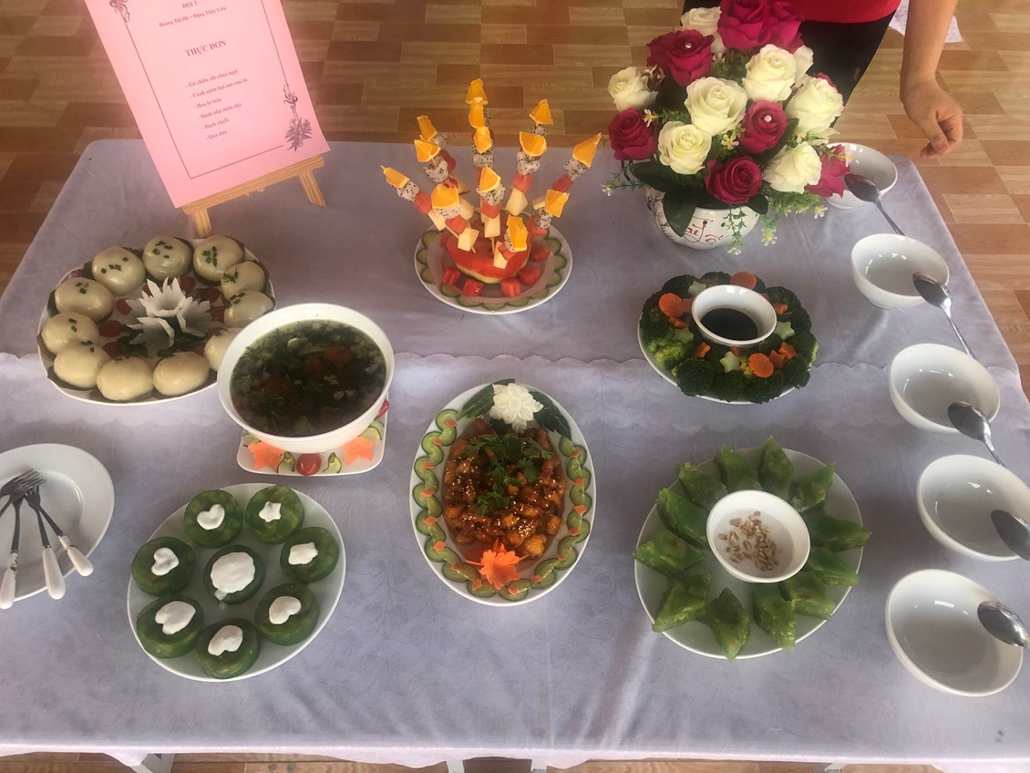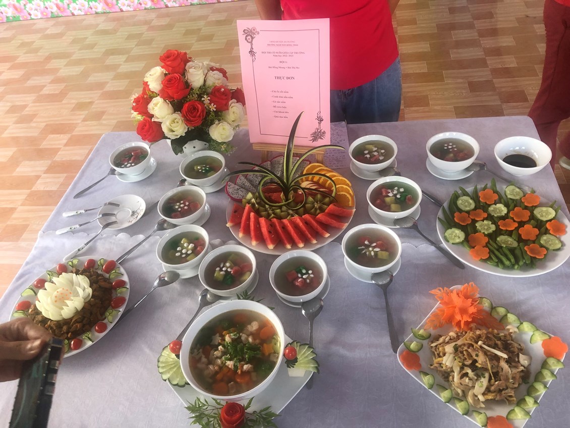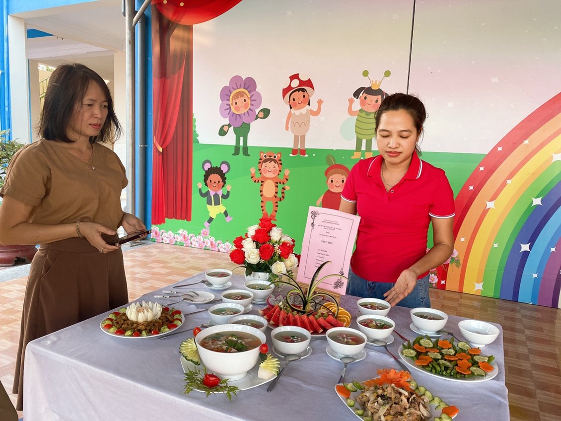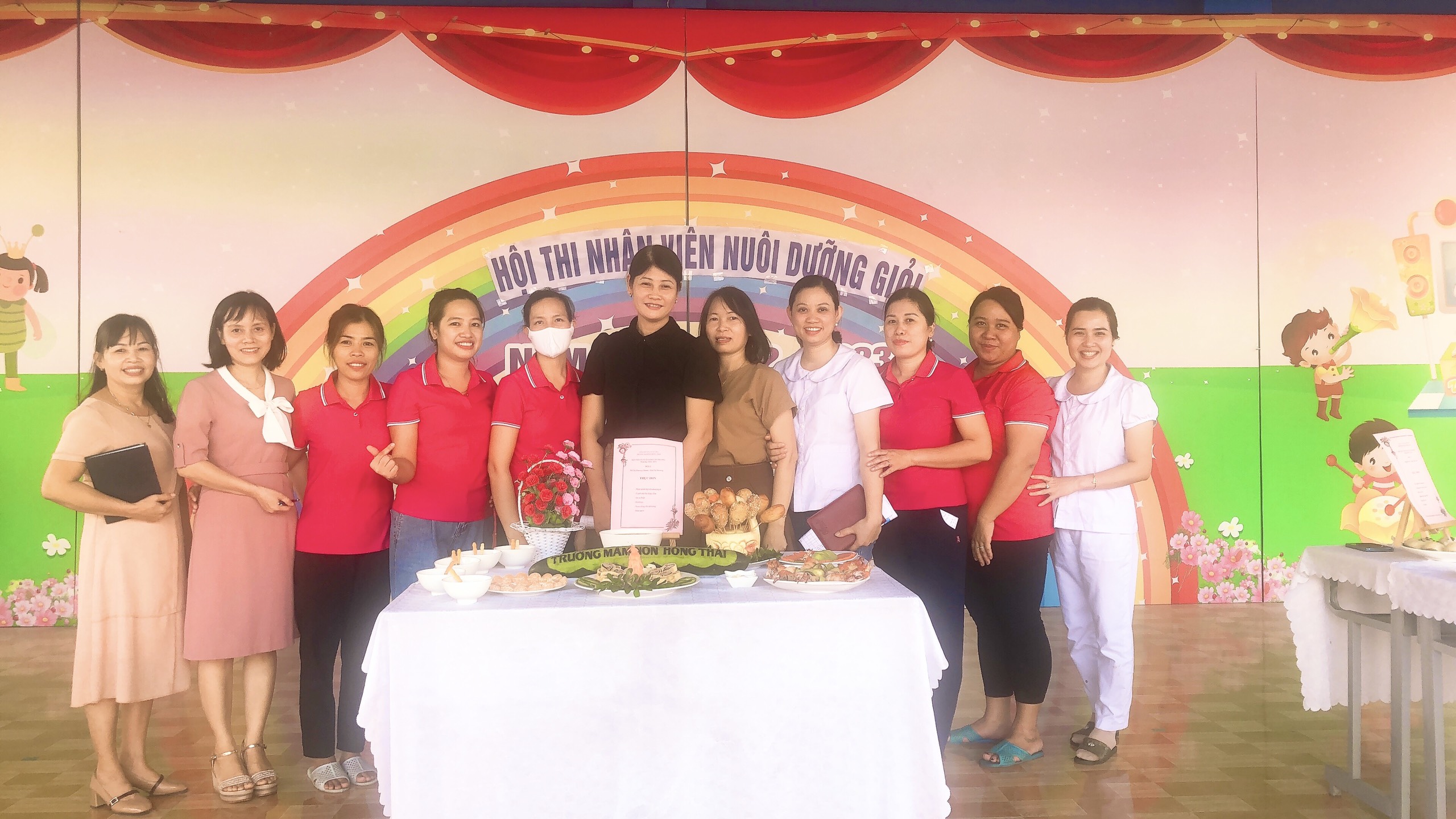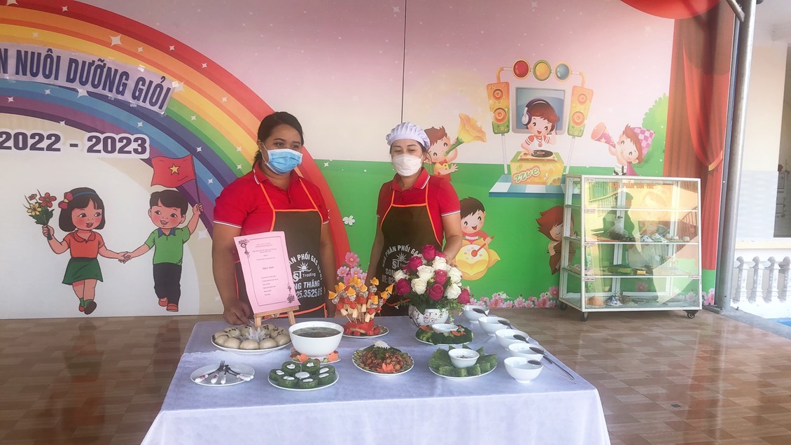 Hòa trong không khí vui tươi, phấn khởi hướng tới kỷ niệm 40 năm ngày nhà giáo Việt Nam 20/11, trường Mầm non Hồng Thái đã phát động các phong trào thi đua sâu rộng tới Cán bộ giáo viên nhân viên với các hoạt động chào mừng vô cùng ý nghĩa. Chiều ngày 8 tháng 11 năm 2022, nhà trường đã tổ chức Hội thi: “Nhân viên nuôi dưỡng giỏi” để chào mừng ngày Nhà giáo Việt Nam, đồng thời nhằm tạo cơ hội để đội ngũ nhân viên nuôi dưỡng trao đổi kinh nghiệm, rèn luyện tay nghề, qua đó nâng cao hơn nữa chất lượng chăm sóc nuôi dưỡng trẻ của nhà trường. 100% nhân viên nuôi dưỡng đã tích cực tham gia Hội thi, với ý thức và sự quyết tâm cao. Cùng với sự chuẩn bị chu đáo, đầu tư nghiên cứu sáng tạo thực đơn phong phú, phù hợp với sự phối hợp hài hòa, hợp lý giữa nhiều loại thực phẩm bổ dưỡng. Kết hợp với đôi bàn tay khéo léo cộng với kinh nghiệm trong chế biến bữa ăn cho trẻ hàng ngày, các cô đã tạo ra những món ăn chất lượng, đủ và cân đối chất dinh dưỡng, lượng calo, rất ngon và vô cùng hấp dẫn. Được sự tạo điều kiện của BGH, sự ủng hộ, phối hợp, hỗ trợ của tập thể CBGVNV và Phụ huynh nhà trường, Hội thi đã thành công tốt đẹp. Hội thi được các cháu học sinh hưởng ứng nhiệt tình, các bậc phụ huynh ghi nhận và đánh giá cao.