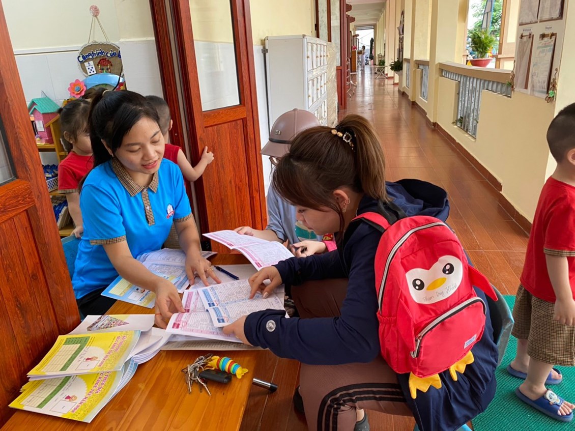 Khám sức khoẻ định kỳ cho trẻ là việc làm hết sức thiết thực và ý nghĩa thông qua việc khám sức khỏe định kỳ cho trẻ. Nội dung kiểm tra gồm: Khám tai, mắt, mũi, họng, kiểm tra tim phổi và một số bệnh liên quan đến đường hô hấp, da liễu ... Qua đó đã góp phần không nhỏ vào việc nâng cao nhận thức cho phụ huynh về ý thức phòng chống một số bệnh thường gặp ở lứa tuổi mầm non và cũng qua hoạt động này đã đem lại sự phấn khởi, tin tưởng trong các bậc phụ huynh về một môi trường giáo dục an toàn và thân thiện. Sau một thời gian làm việc nhiệt tình và trách nhiệm cao, 100% trẻ đã được khám sức khoẻ định kỳ.