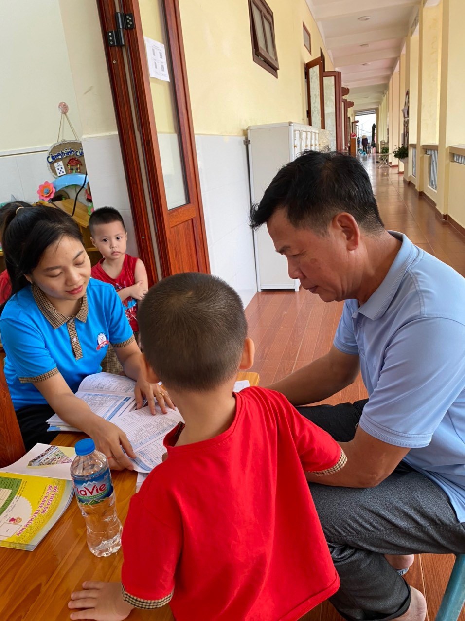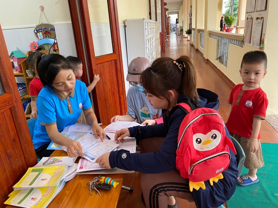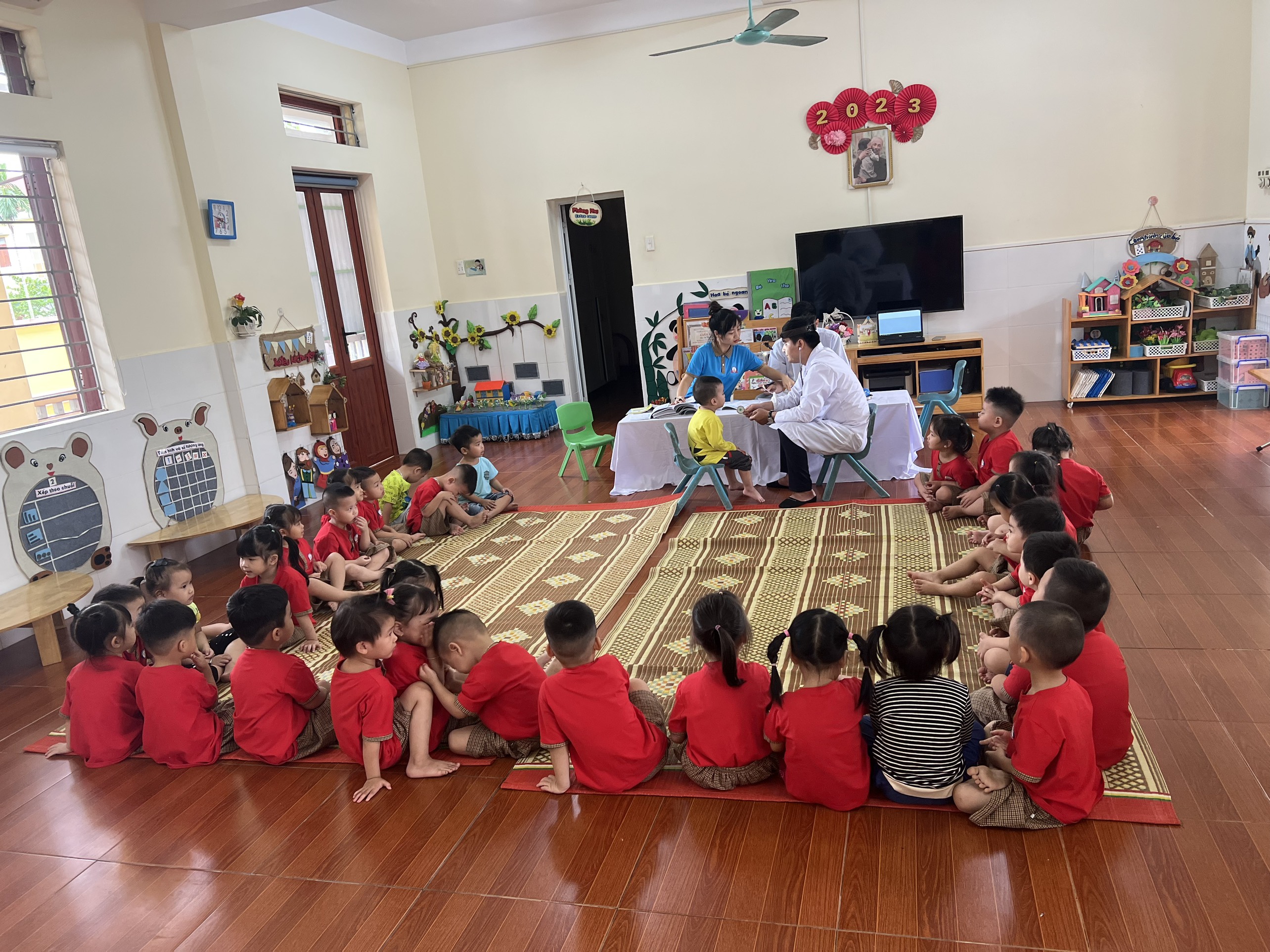 Sáng ngày 11/10/2023, Ban giám hiệu nhà trường đã kết hợp với Trạm Y tế xã Hồng Thái tổ chức khám sức khỏe định kỳ đầu năm học 2023 - 2024 cho trẻ tại lớp học.