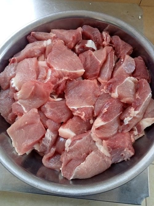 Thịt : Rửa sạch, trần sơ, rồi đem rim gia vị
