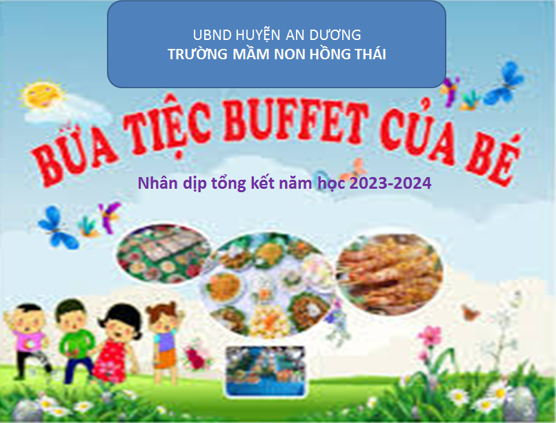 Nhân dịp tổng kết năm học 2023-2024, chào mừng ngày Quốc tế Thiếu nhi 01/06. Cô và các cháu trường Mầm non Hồng Thái đang háo hức chuẩn bị cho bữa tiệc Buffet sẽ được tổ chức vào thứ 6 ngày 24 tháng 5 năm 2024. Ông bà, bố mẹ chuẩn bị vui cùng với các con nhé!