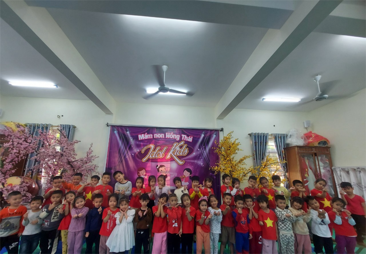 Nhân dịp kỷ niệm 79 năm ngày thành lập Quân đội nhân dân Việt Nam. 33 năm ngày hội Quốc phòng toàn dân. Để giúp bé hiểu biết về ý nghĩa của ngày 22/12 là ngày thành lập Quân đội nhân dân Việt Nam và các bé hiểu được sự vất vả, khổ luyện của các chú bộ đội đang ngày đêm luyện tập, canh giữ biên cương, bảo vệ Tổ quốc để các cháu có được tự do, hạnh phúc, được học hành, vui chơi trong môi trường bình yên và chương trình hôm nay như một lời tri ân, muốn cảm ơn các bác, các chú đã có công gìn giữ hòa bình và bảo vệ tổ quốc để các cháu có cuộc sống hòa bình như hôm nay. Các bé lớp 5 Tuổi A4 đồng diễn bài dân vũ: “Việt Nam ơi” nhằm tỏ lòng biết ơn và tình cảm đến các chú bộ đội