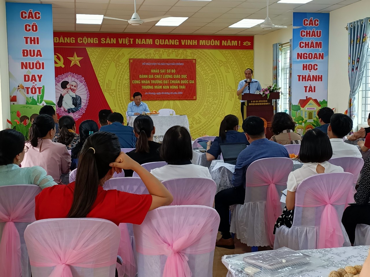 Ngày 2/6/2022 tSở GD&ĐT khảo sát sơ bộ đánh giá chất lượng giáo dục công nhận trường MN Hồng Thái đạt chuẩn quốc gia.