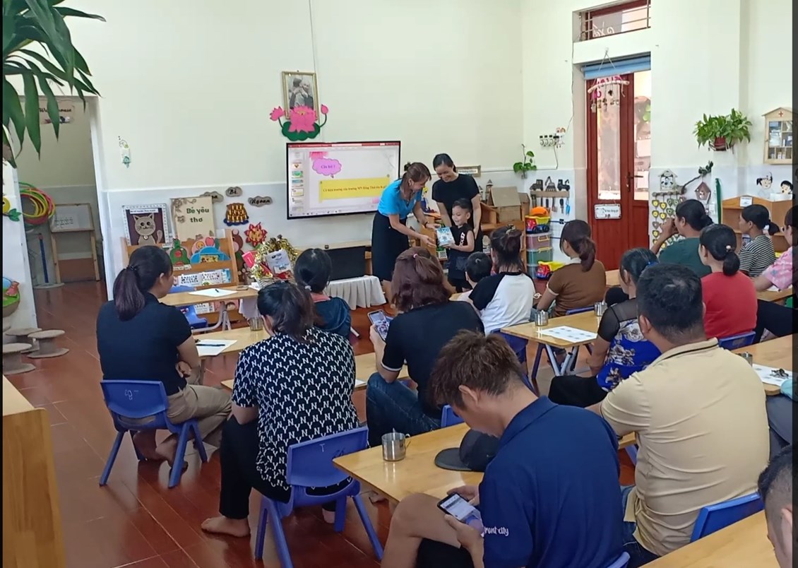 Với nhiều sáng tạo của các cô giáo buổi gặp mặt phụ huynh đầu năm được tổ chức với hình thức đổi mơi hấp dẫn: Phụ huynh được tham gia các trò chơi với giáo viên để tìm hiểu về tình hình thực tế của trường-lớp-giáo viên; Được viết lời yêu thương gửi cho con trên những tấm thiệp xinh xắn đáng yêu từ bàn tay khéo léo của các cô giáo.