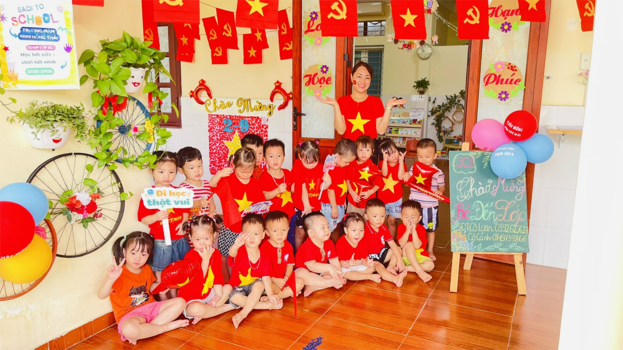 🍀🥰❤️❤️❤️Các bé mẫu giáo 3 tuổi C1 Trường mầm non Hồng Thái vui tươi vẫy cờ đỏ sao vàng, cùng hát múa chào mừng 80 năm ngày Quốc khánh 2/9. Trên gương mặt hồn nhiên, trong sáng là niềm vui và tự hào khi được tham gia hoạt động ý nghĩa. Các bé còn cùng nhau dán cờ, trang trí lớp học rực rỡ sắc đỏ vàng. Đây là dịp để các bé được giáo dục lòng yêu nước và tình cảm với Tổ quốc ngay từ những ngày đầu đời. Ba mẹ cùng ngắm nhìn các bé qua hoạt động thật ý nghĩa này nha🍀🥰❤️❤️