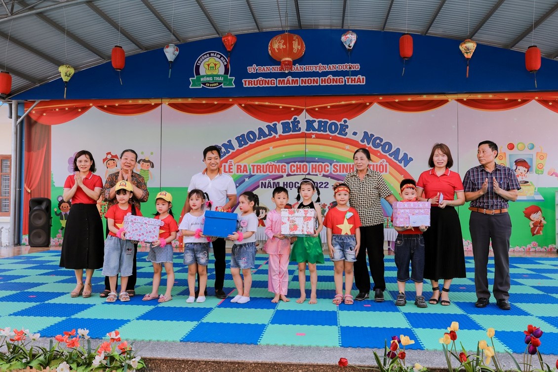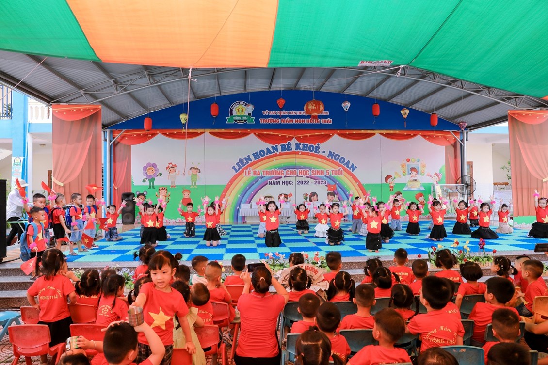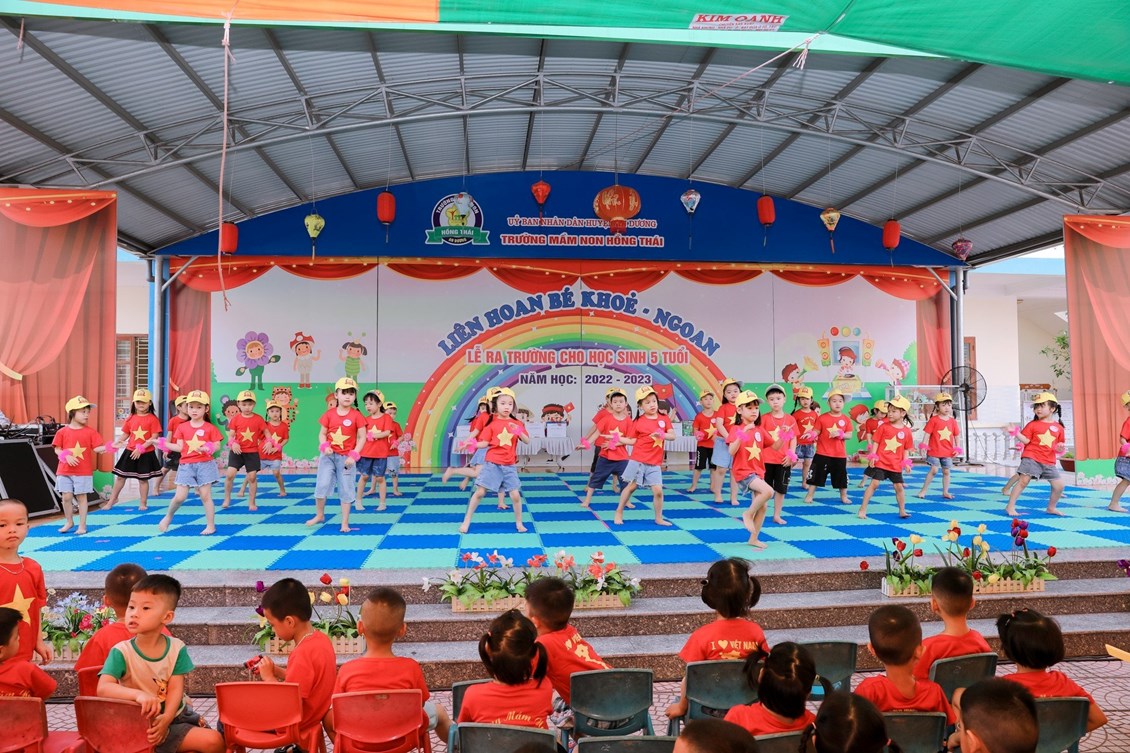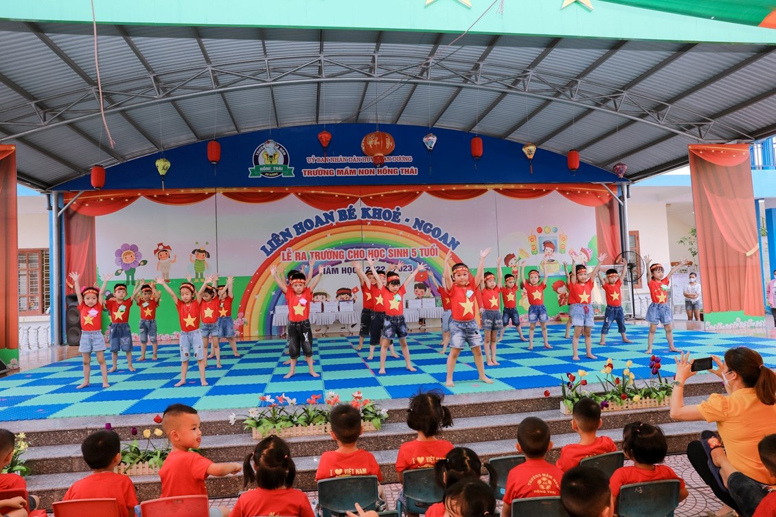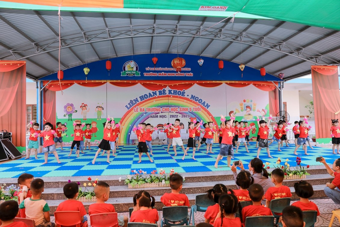 Ngày 23/5/2023 trường mầm non Hồng Thái tổ chức liên hoan “Bé khỏe ngoan” –“Lễ ra trường cho học sinh 5 tuổi” Tại buổi liên hoan các bé được tham gia biểu diễn các tiết mục văn nghệ đặc sắc; Trình diễn thời trang của các bé từ Nhà trẻ đến 5 tuổi; Khối 5 tuổi được tham gia trò chơi “Trạng nguyên nhí”; ngoài ra các bé toàn trường còn được tham gia rất nhiều trò chơi tập thể hay và bổ ích. Buổi liên hoan giúp các bé có nhiều cơ hội giao lưu, chia sẻ, thể hiện khả năng của mình trong các lĩnh vực khác nhau như: Tìm hiểu môi trường xung quanh, tìm hiểu luật lệ an toàn giao thông, chữ cái, số đếm, khả năng giao tiếp, giúp trẻ mạnh dạn, tự tin khi tham gia các hoạt động tập thể và đặc biệt trẻ lớp 5 tuổi sẽ vững vàng hơn khi bước vào lớp 1.