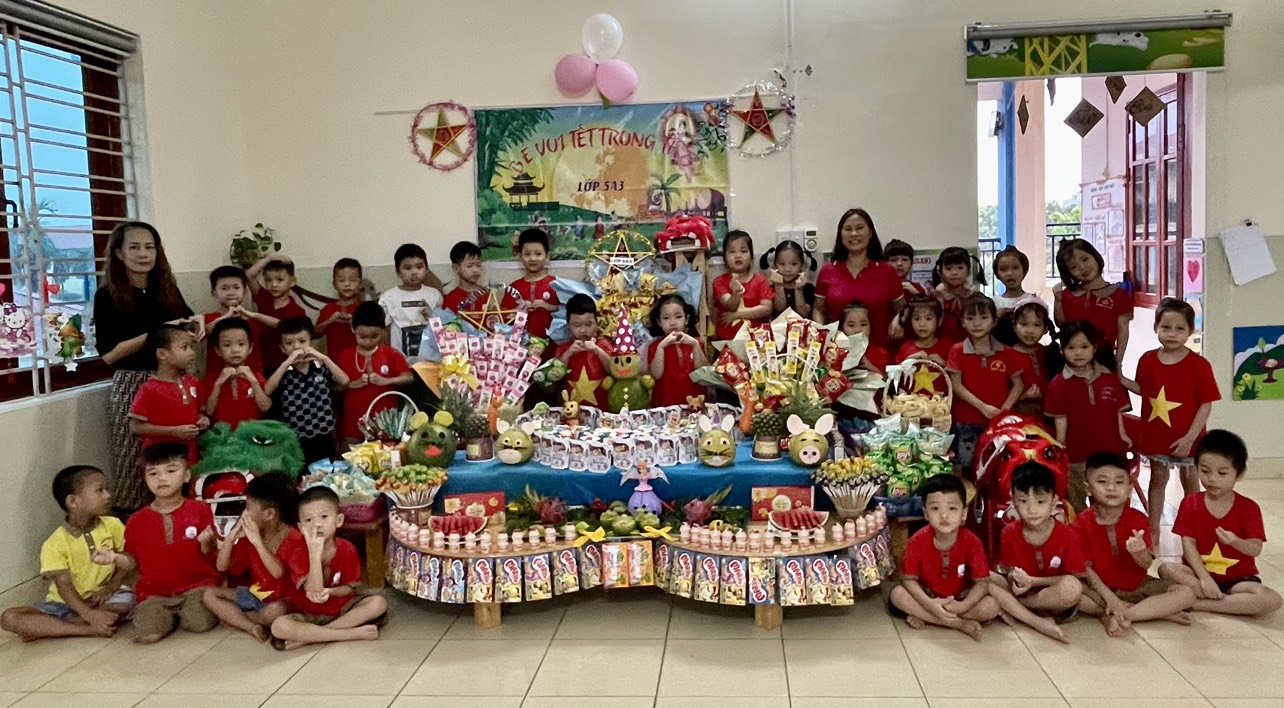 Tết trung thu của các bé lớp 5A3 thật vui vẻ và ý nghĩa cùng các cô và các bạn. Dù trời mưa nhưng không khí đón trung thu của các bé vẫn vô cùng vui vẻ và đầy ắp tiếng hát tiếng cười, rộn ràng tiếng trống sư tử. Các bé cũng hào hứng chuẩn bị mâm cỗ cùng cô và sự quan tâm của các bậc phụ huynh giúp các con có thêm hiểu biết về ý nghĩa ngày tết trung thu.