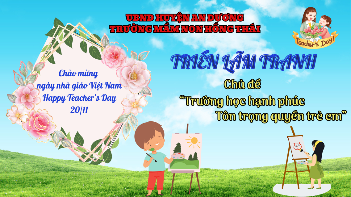 🌻 Để chào mừng ngày nhà giáo Việt Nam 20/11 trường mầm non Hồng Thái tổ chức Triển lãm tranh chủ đề “Trường học hạnh phúc-tôn trọng quyền trẻ em”. Những bức tranh đẹp được lựa chọn tại Hội thi vẽ tranh cấp trường và các bức tranh đẹp các bé đã vẽ tại lớp và hoạt động tại phòng chức năng.