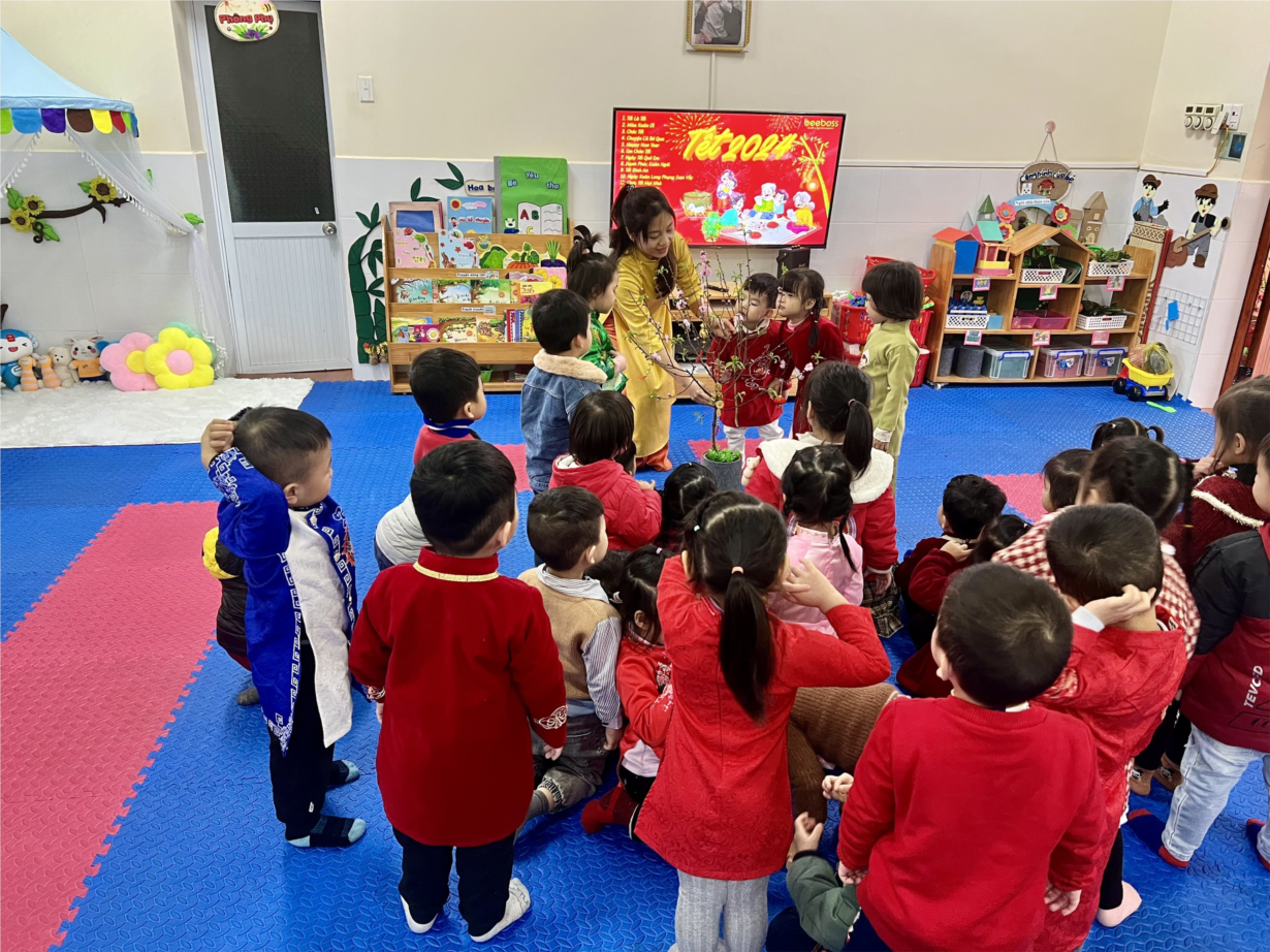 🌸Ngày tết cổ truyền được gọi là tết Nguyên đán hay tết âm lịch. Để chuẩn bị cho ngày tết quan trọng của năm mới mọi nhà đều khá bận rộn như: chuẩn bị bánh kẹo, mâm ngũ quả, nước ngọt, bia lon, hoa cắm lọ trang trí trong nhà, lì xì mừng tuổi... Và không thể thiếu được trong ngày tết đó là trang trí cây đào, cây quất. Hòa vào không khí của ngày tết đang đến gần cô và trò lớp 3 tuổi C1 trường mầm non Hồng Thái cùng tham gia buổi trò chuyện, trải nghiệm “Bé trang trí cây đào ngày tết” để cho trẻ hiểu hơn về ý nghĩa tốt đẹp của ngày tết cổ truyền của dân tộc Việt Nam.