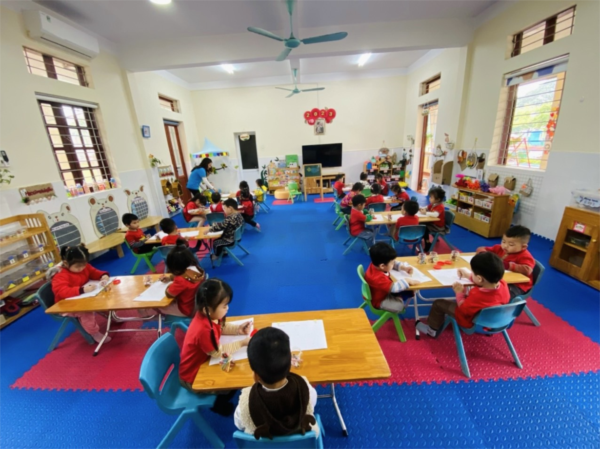 Giờ học tạo hình: Vẽ con gà của các bé mẫu giáo bé C1 tại trường mầm non Hồng Thái
