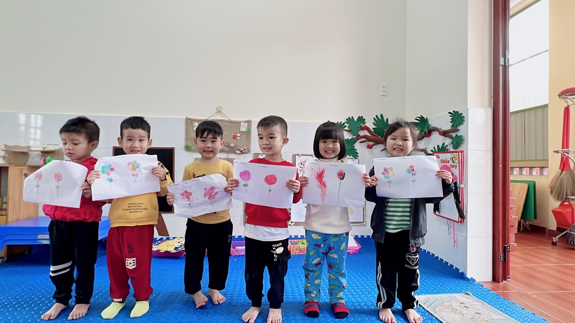 🌻Bố mẹ hãy cùng ngắm nhìn bài tạo hình "Vẽ hoa tặng mẹ" của các con nhé!