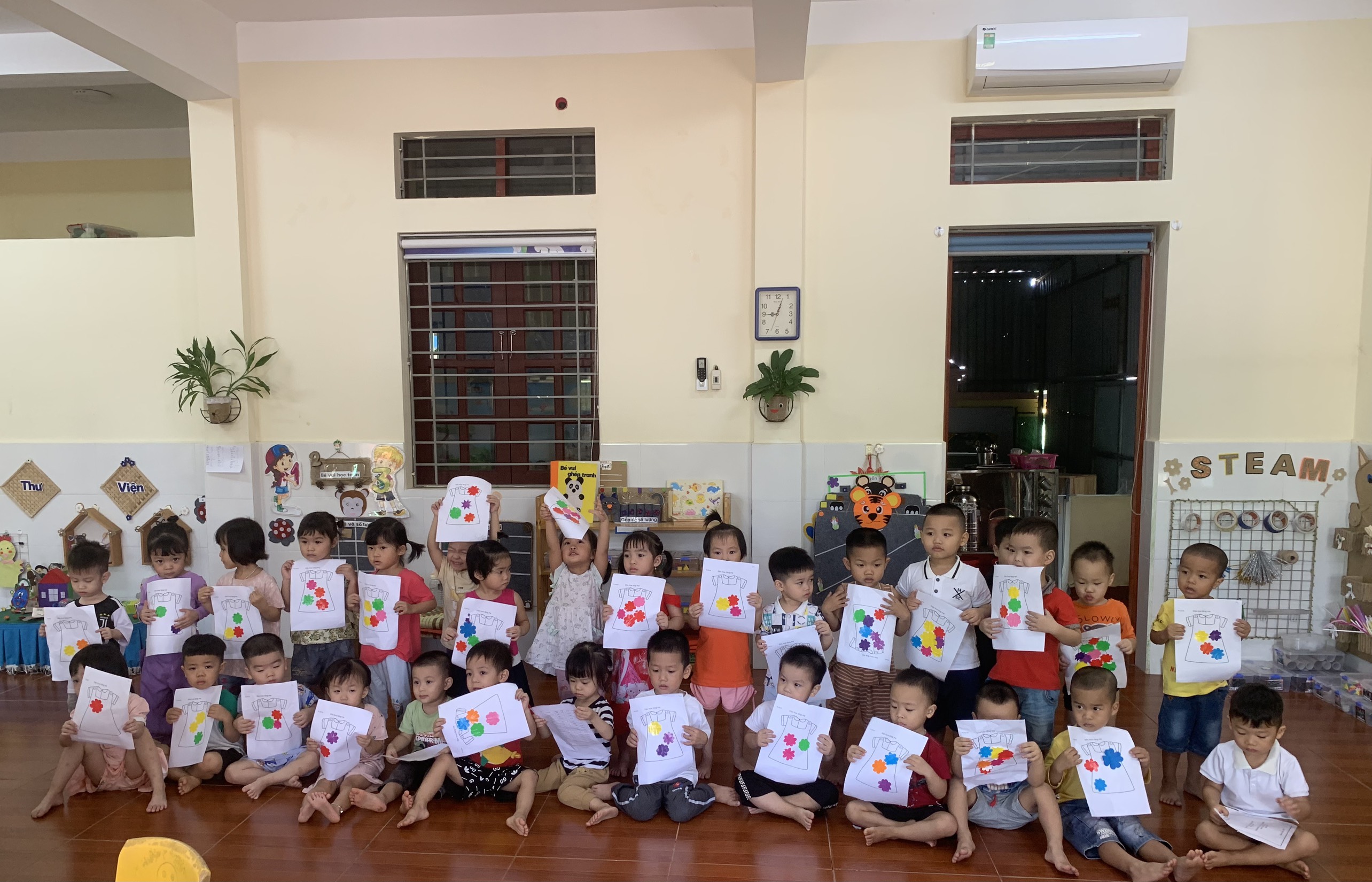 Hoạt động tạo hình:Dán hoa tặng mẹ lớp 3 tuổi C2