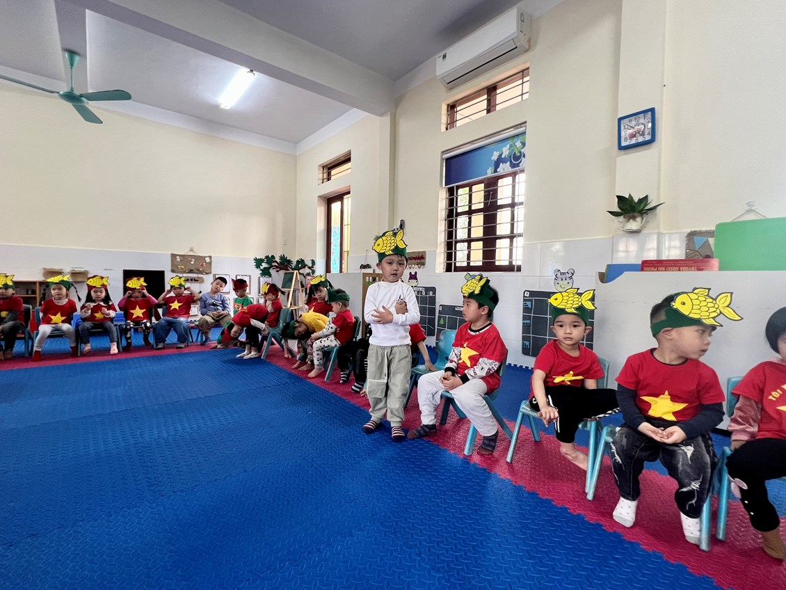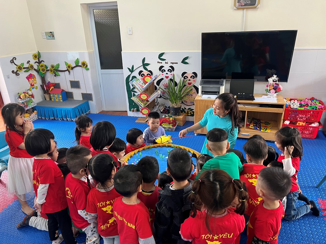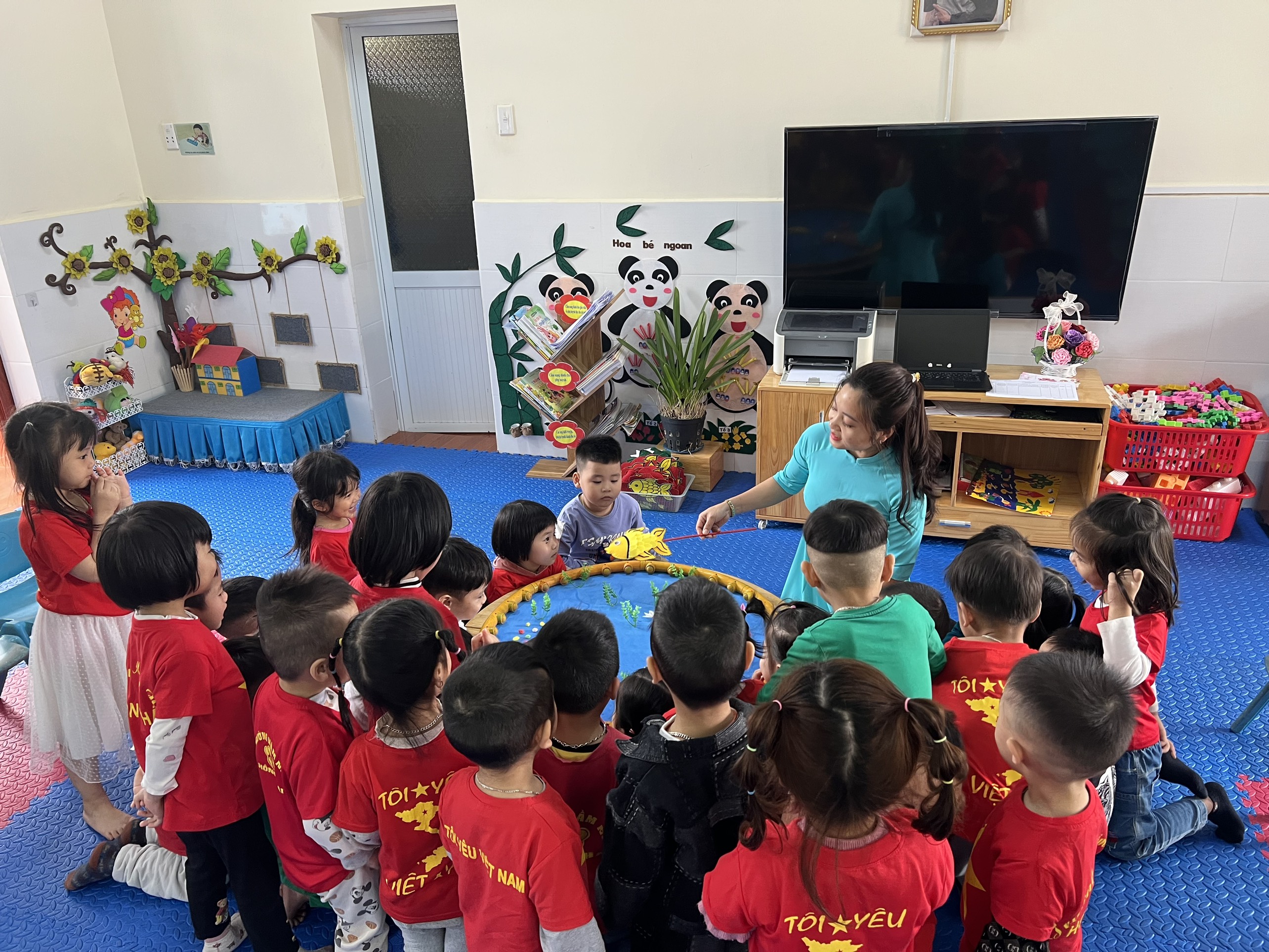 Hôm nay cô giáo lớp 3C2 dạy bé kĩ năng ca hát: Bài hát "Cá vàng bơi”.