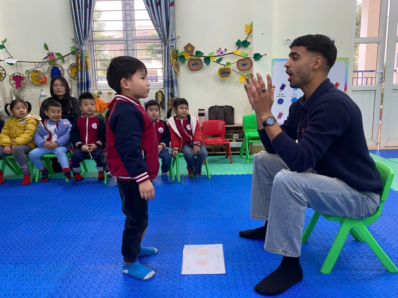 Các bạn nhỏ lớp 4 tuổi B4 được tham gia tiết học làm quen với tiếng Anh cùng thầy giáo nước ngoài 😊.