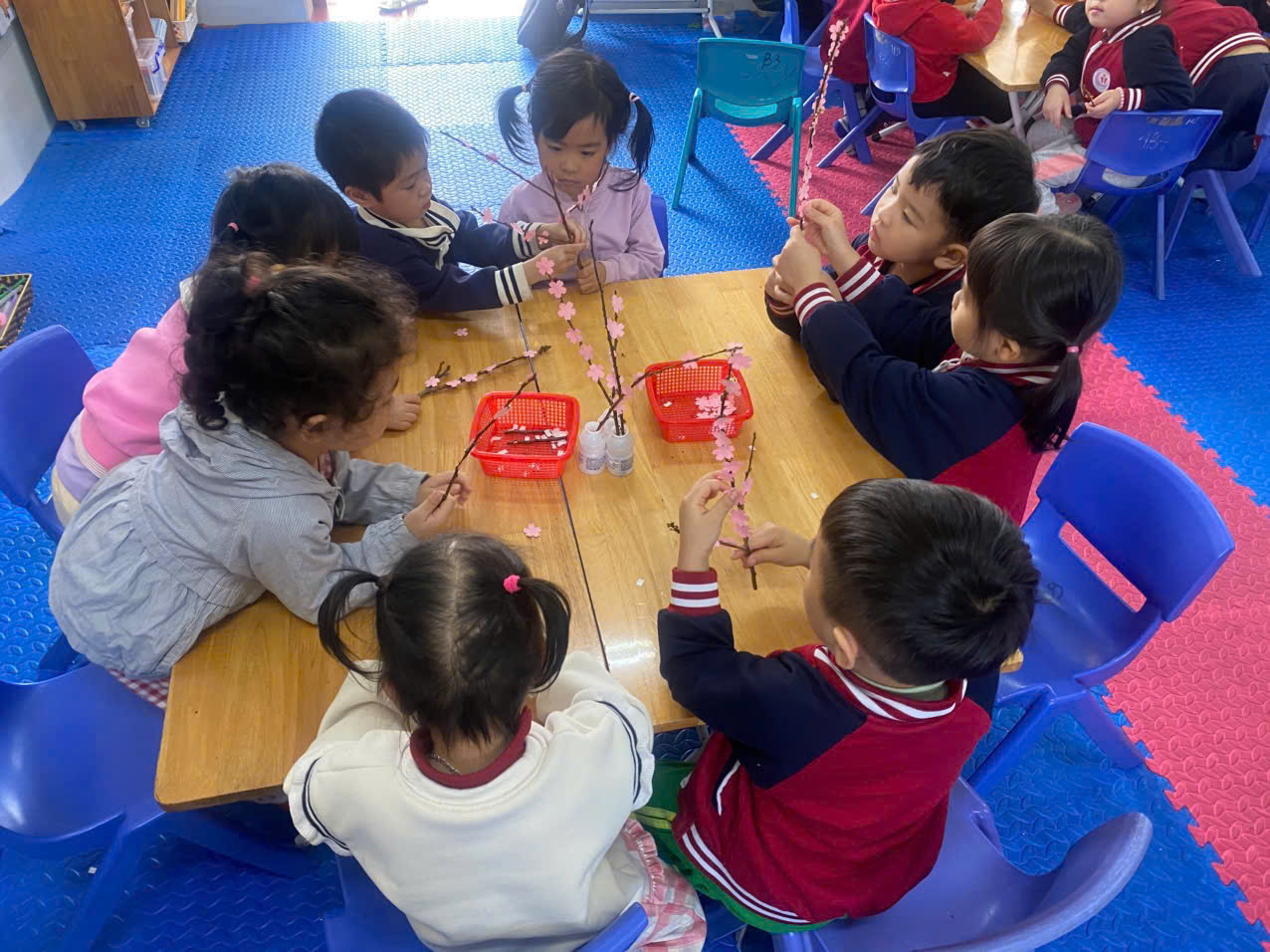 Các bé lớp 4 tuổi B4 rất hào hứng tham gia hoạt động dán hoa đào, hoa mai 🌸 🌼
