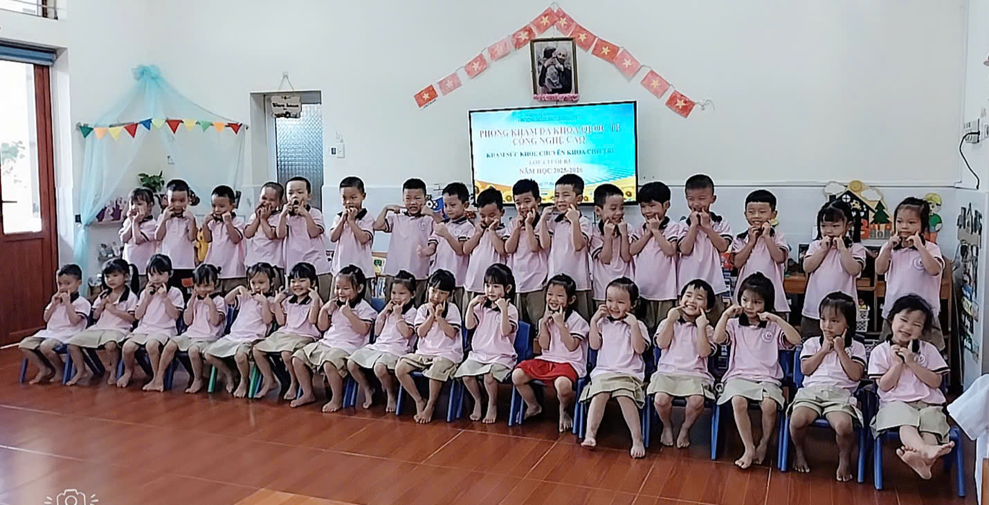 Trong tiết học “Bé làm quen tiếng Anh – Chủ đề My Classroom (Lớp học của tôi)”, các con được nhận biết và gọi tên một số đồ vật quen thuộc trong lớp như ruler (thước kẻ), eraser (cục tẩy), chalk (phấn), notebook (sổ tay)… bằng tiếng Anh. Hoạt động giúp trẻ phát triển khả năng nghe – nói, rèn phản xạ ngôn ngữ tự nhiên và hình thành niềm yêu thích học tiếng Anh ngay từ nhỏ.