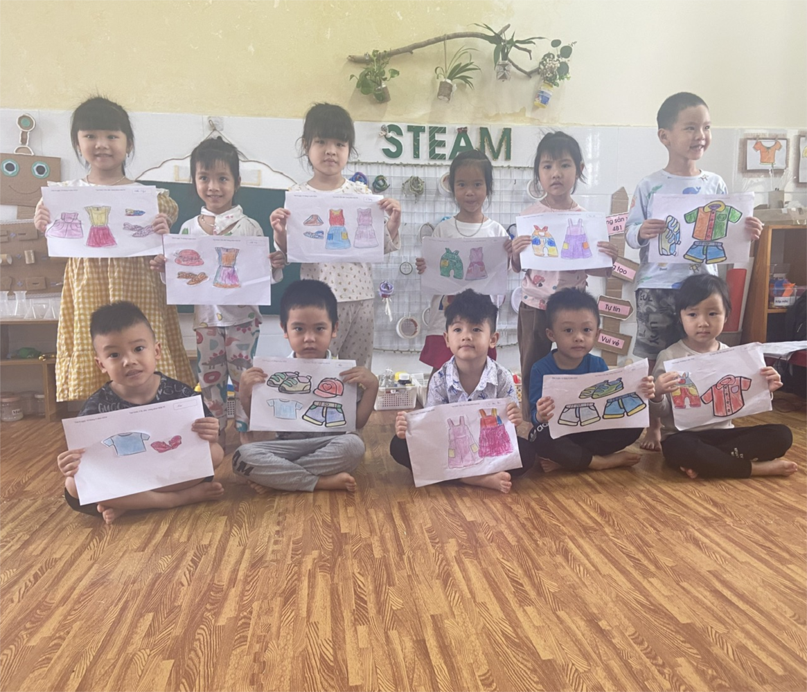 Các bé lớp 4B1 với hoạt động học: “Cắt, dán trang phục mùa hè” 👓👗