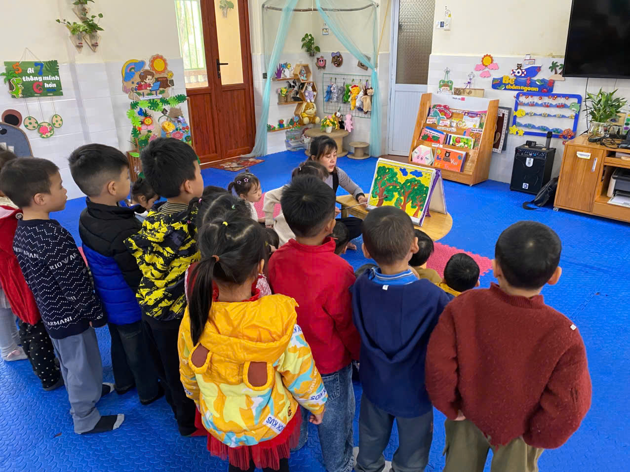 Hoạt động tạo hình là một trong những hoạt động đặc trưng gần gũi và hấp dẫn nhất đối trẻ. Mục đích của hoạt động tạo hình nhằm giúp trẻ tìm hiểu và thể hiện sản phẩm một cách tự nhiên, sinh động, sáng tạo từ góc nhìn của trẻ về thế giới xung quanh. Thông qua vẽ nhằm khơi gợi và phát huy khiếu thẩm mỹ vốn có ở trẻ, cho trẻ hứng thú trước cái đẹp. Sau đây, xin mời phụ huynh và các bạn nhỏ đến với giờ học “Vẽ vườn cây ăn quả” của các bé lớp 4 tuổi B3.
