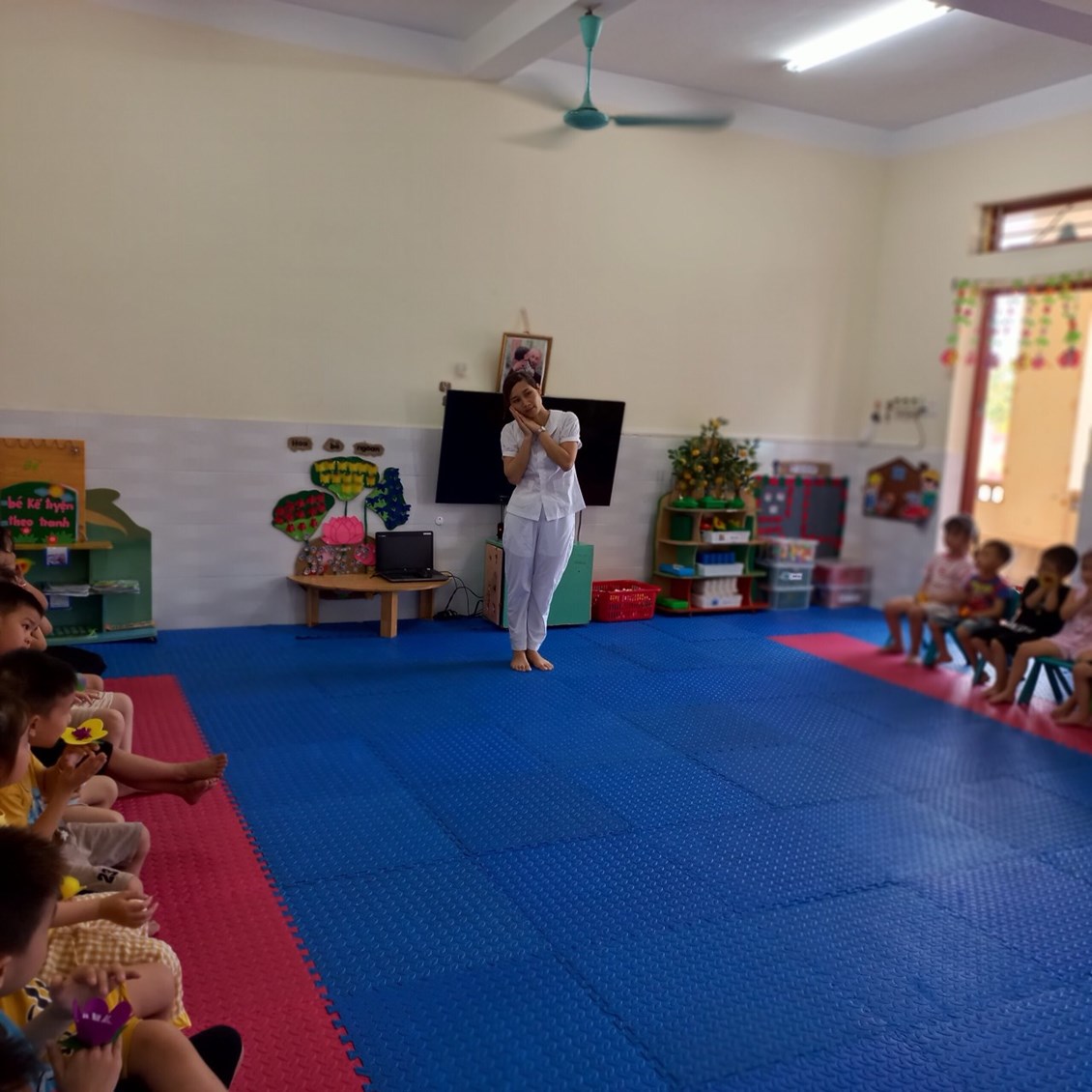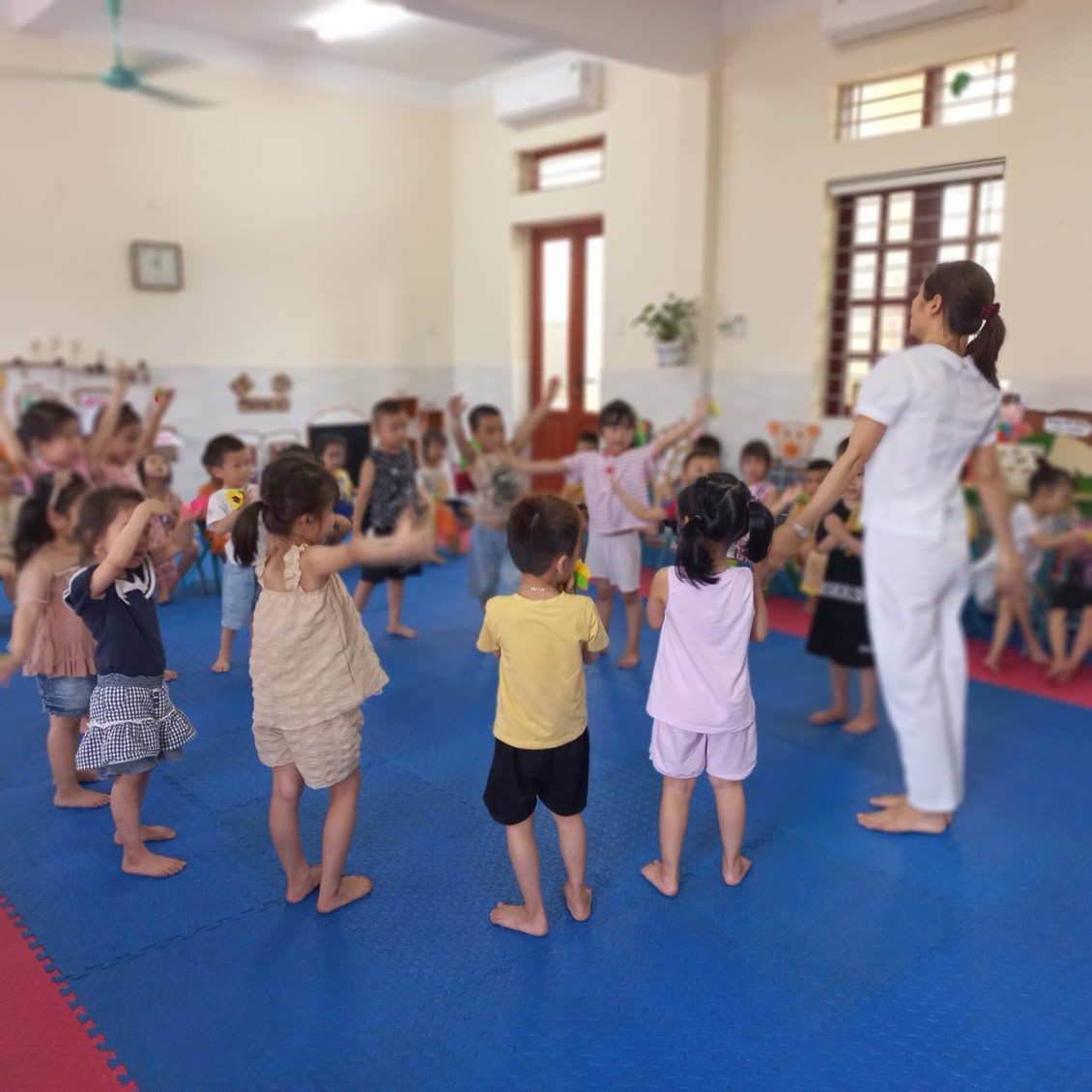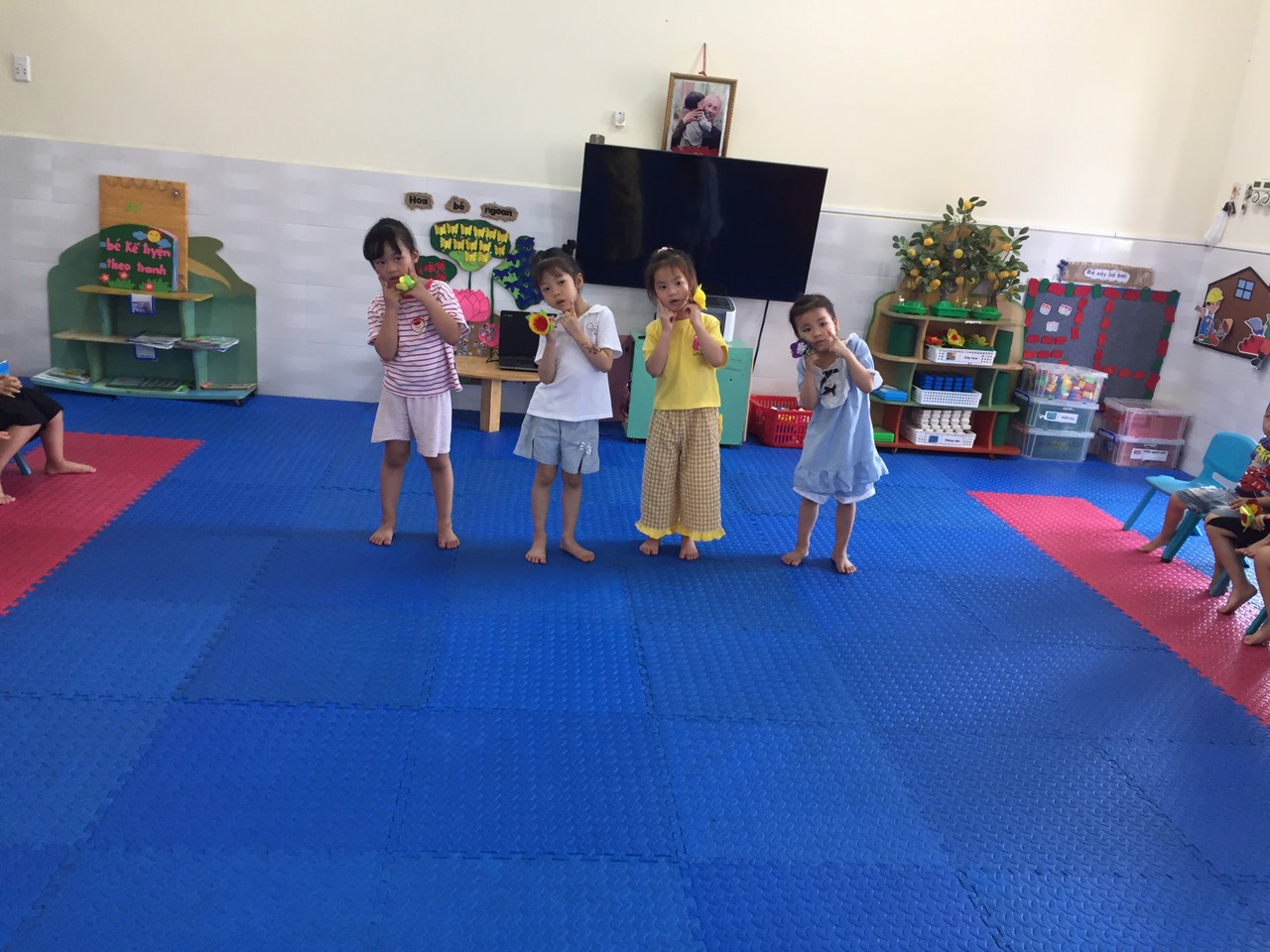 🥰🧚♂️🧚♀️ Trẻ cảm thấy thích thú luôn có tâm trạng vui vẻ và hào hứng khi bước vào giờ học. Trẻ chủ động giao lưu và kết hợp với nhau 1 cách nhuần nhuyễn hơn mỗi khi cô yêu cầu nhóm lên biểu diễn.
