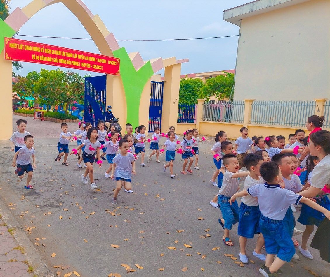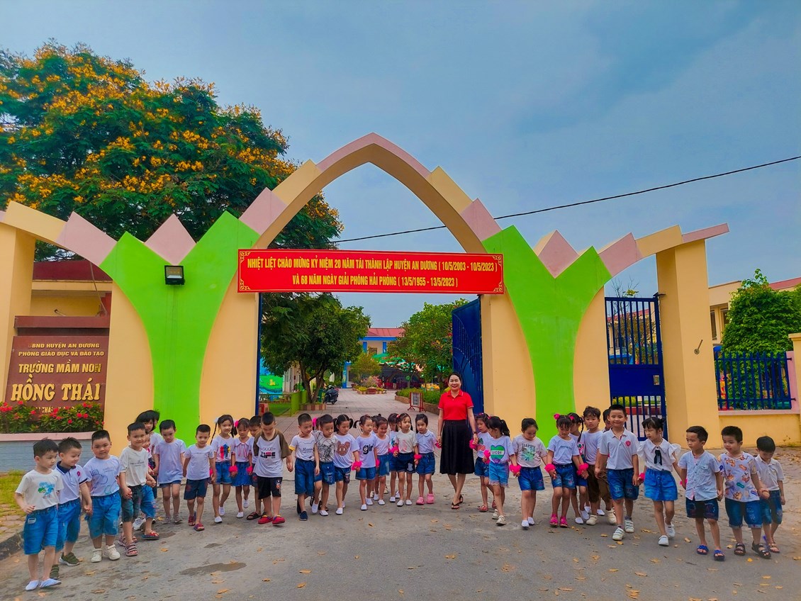 Thời gian trôi nhanh quá. Một năm học đã kết thúc. Thời gian bên mái trường mầm non Hông Thái yêu dấu của các bé lớp 5 tuổi A4 đã sắp kết thúc. Tháng 5 về hoa phượng rủ nhau bật tung sắc đỏ rợp trời, những bông hoa bằng lăng tím e ấp bên tán lá xanh, báo hiệu hè đã đến, tiếng ve kêu râm ran báo hiệu một năm học kết thúc. Điều đó có nghĩa là ngày chia xa các bạn học trò nhí đã sắp tới gần Yêu lắm, thương lắm và sẽ buồn lắm, nhớ lắm bóng dáng các học trò thân yêu. Những khuôn mặt thân thương, những bóng hình nhỏ nhắn đáng yêu sẽ mãi trong lòng các cô.