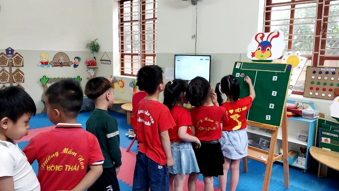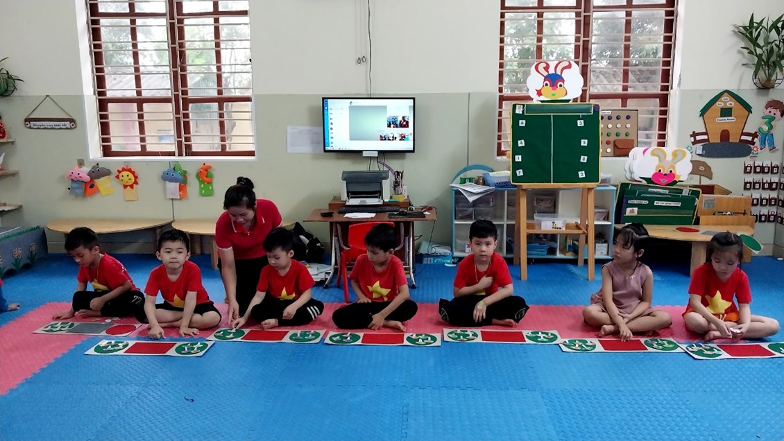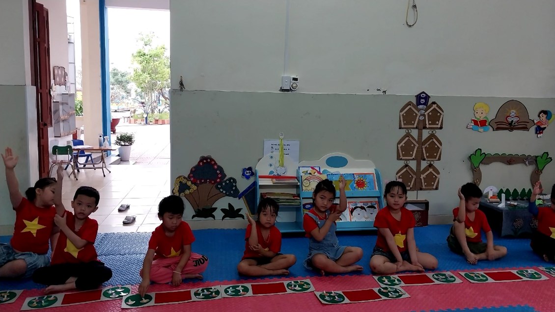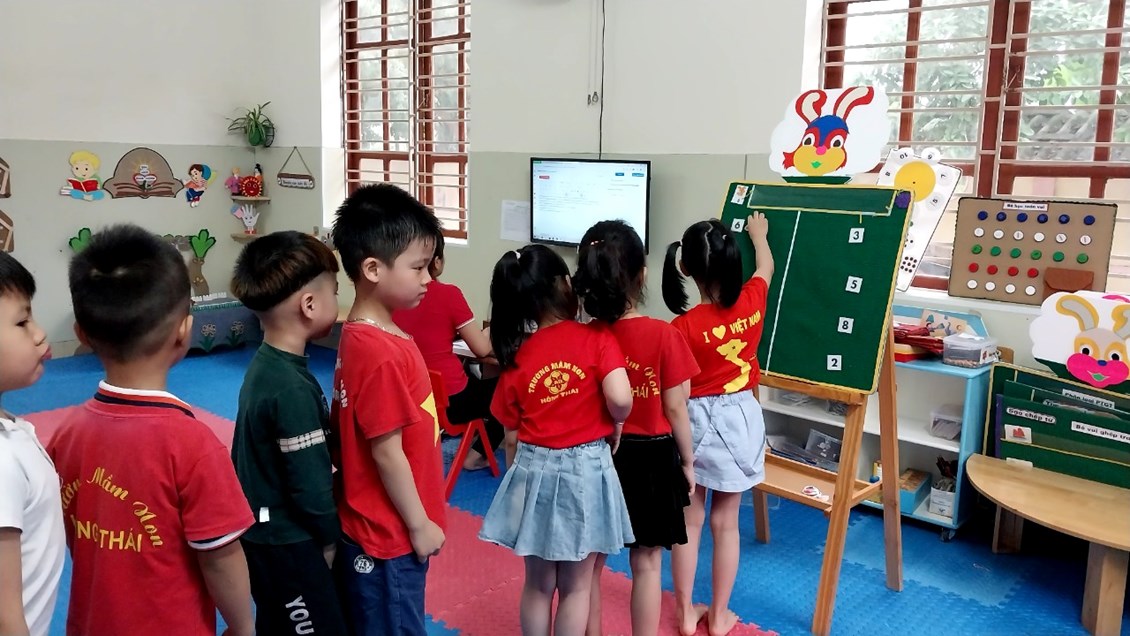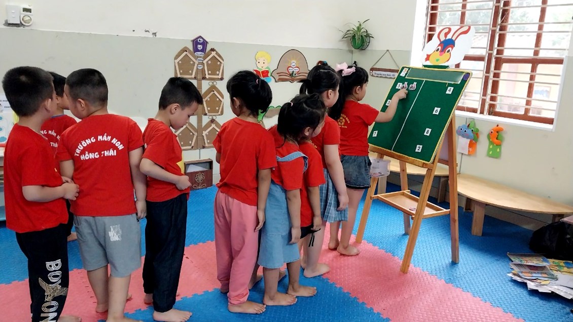 Hoạt động làm quen với toán ở lớp mẫu giáo lớn có vai trò quan trọng và cần thiết tạo tiền đề phát triển tư duy cho trẻ vũng vàng tự tin hơn khi trẻ bước vào lớp 1. Toán là môn học được coi là khô khan nhưng với đồ dùng đẹp thì các bé lớp 5A1 rất hứng thú tham gia vào hoạt động