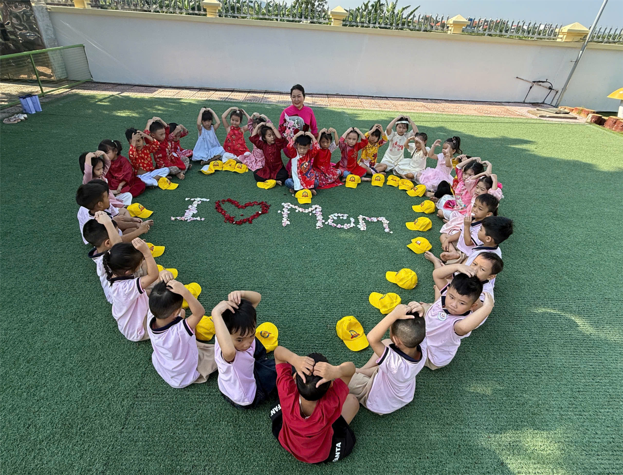 “Hôm nay là một ngày thật đặc biệt – ngày mà chúng mình gửi thật nhiều yêu thương đến mẹ, bà và cô giáo. Các bé ơi, mẹ là người luôn chăm sóc, bà là người luôn ân cần, còn cô giáo là người dạy ta biết điều hay. Nhân ngày 20 tháng 10, chúng mình cùng hát, cùng múa thật vui để nói lời: Con yêu mẹ, yêu bà và yêu cô thật nhiều!” 💖