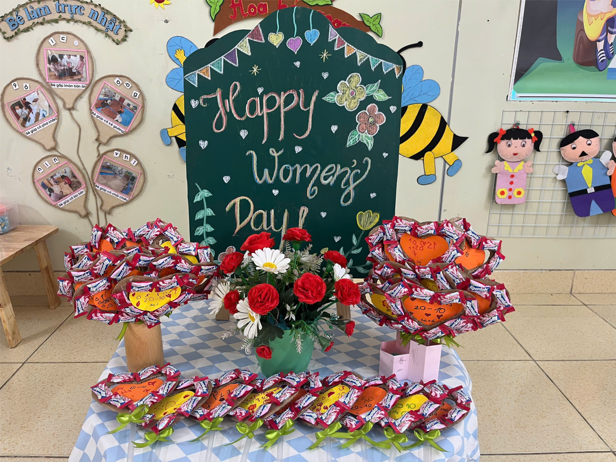 Hoạt động giúp trẻ biết bày tỏ tình cảm, biết quan tâm và trân trọng những người phụ nữ quanh mình – một bài học giản dị mà ý nghĩa sâu sắc 🌷