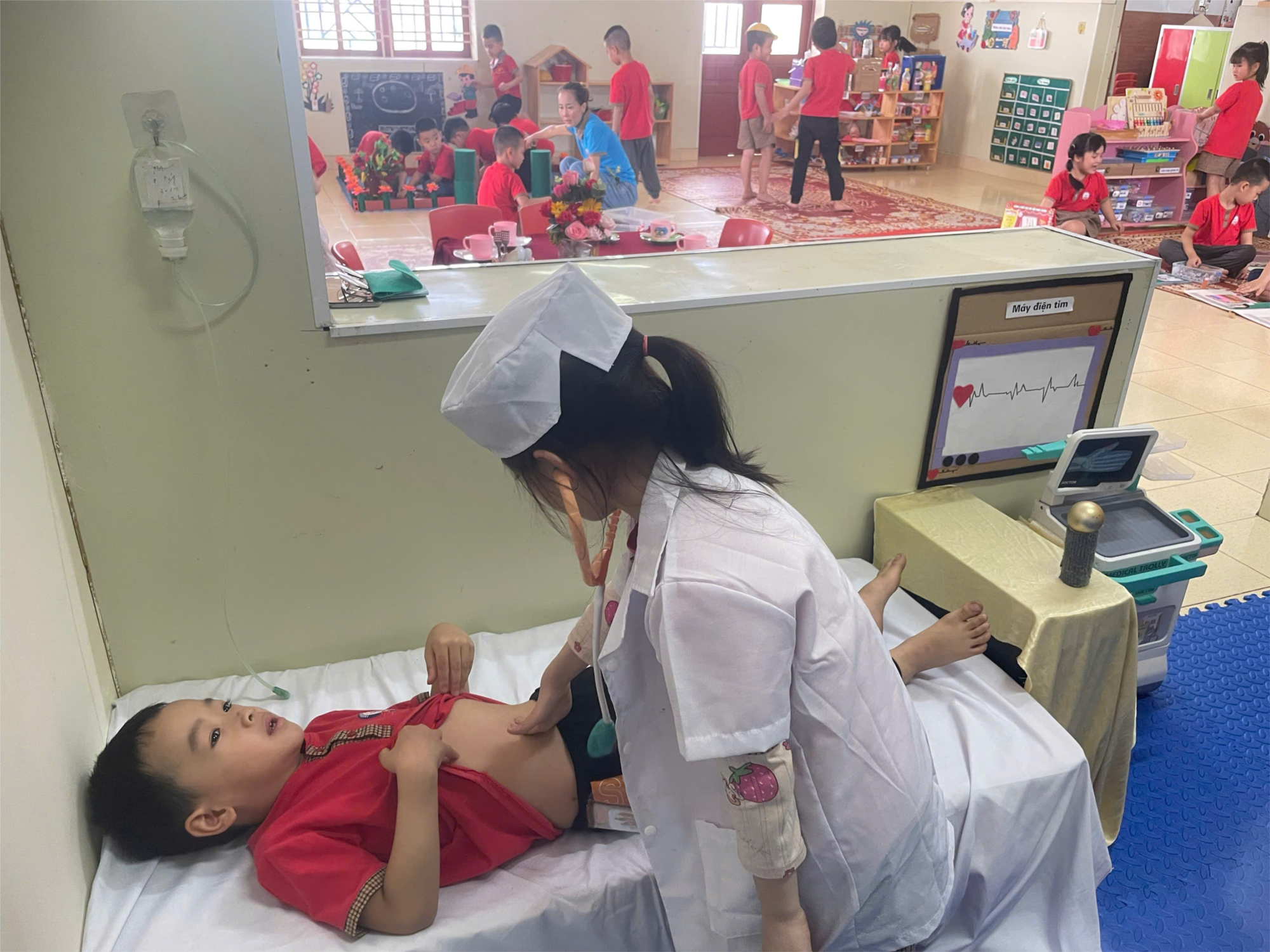 Góc Bác sĩ các con khám bệnh cho các bệnh nhân đẻ trẻ có một số hiểu biết về các bệnh và biết một số biểu hiện của một số bệnh đơn giản để phòng tránh