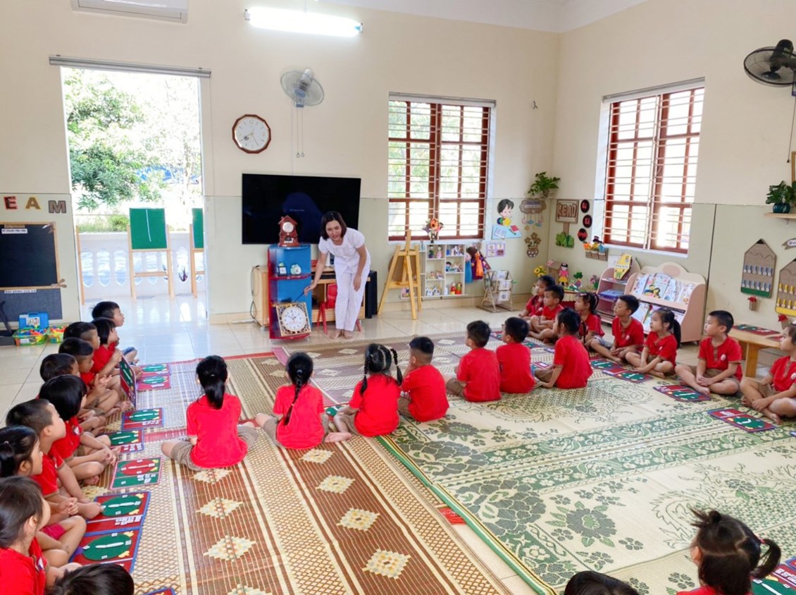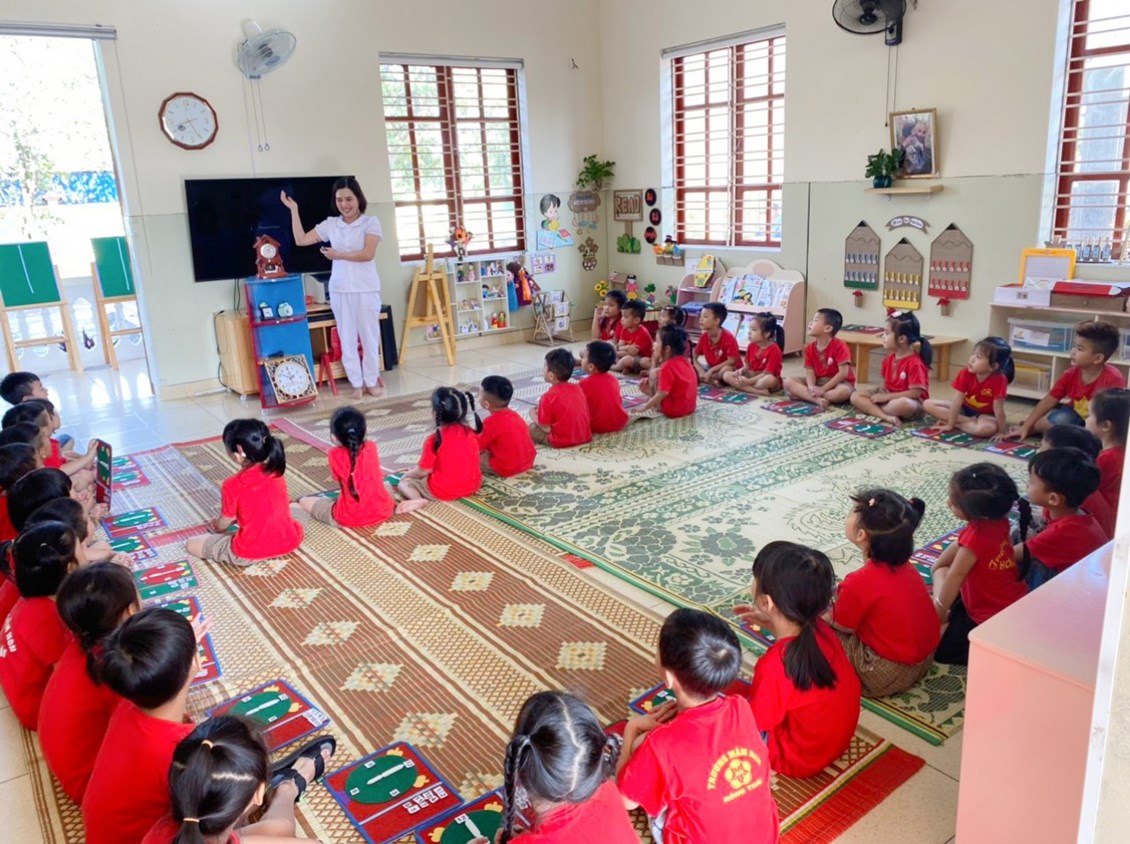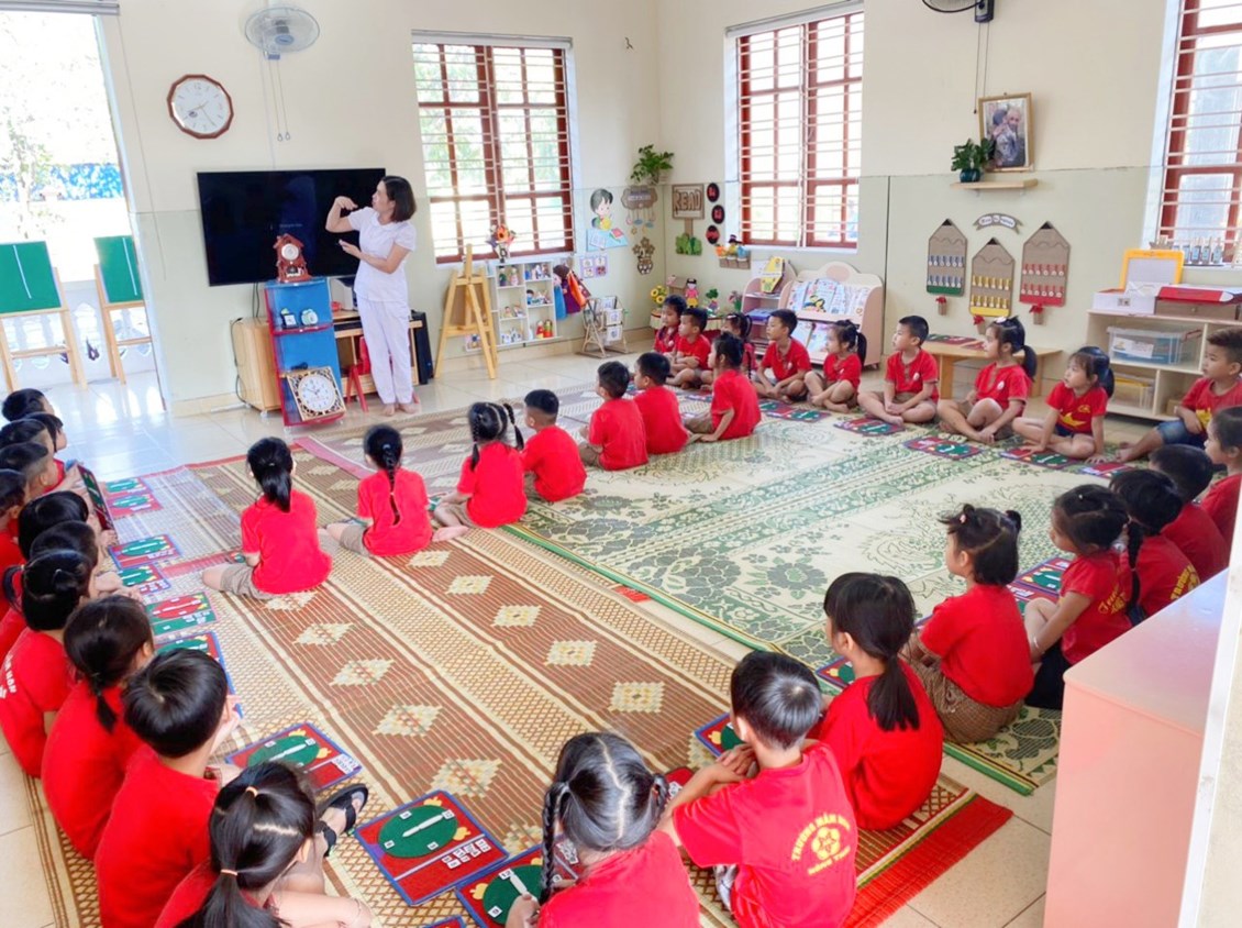 Hoạt động học: Dạy trẻ xem giời đúng trên đồng hồ. Lĩnh vực phát triển nhận thức: Lớp 5A1.