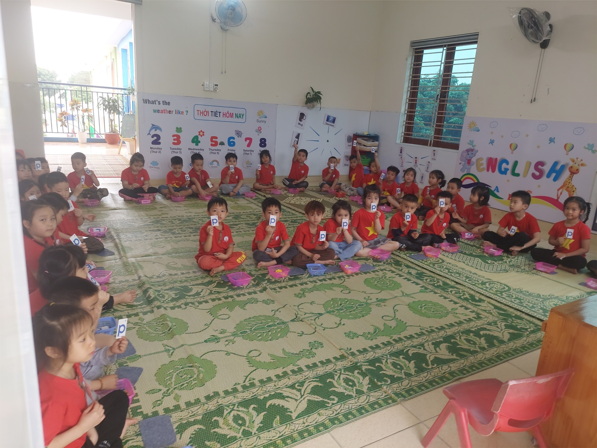 Hoạt động học: làm quen chữ cái p, q của các bé lớp 5 tuổi A4