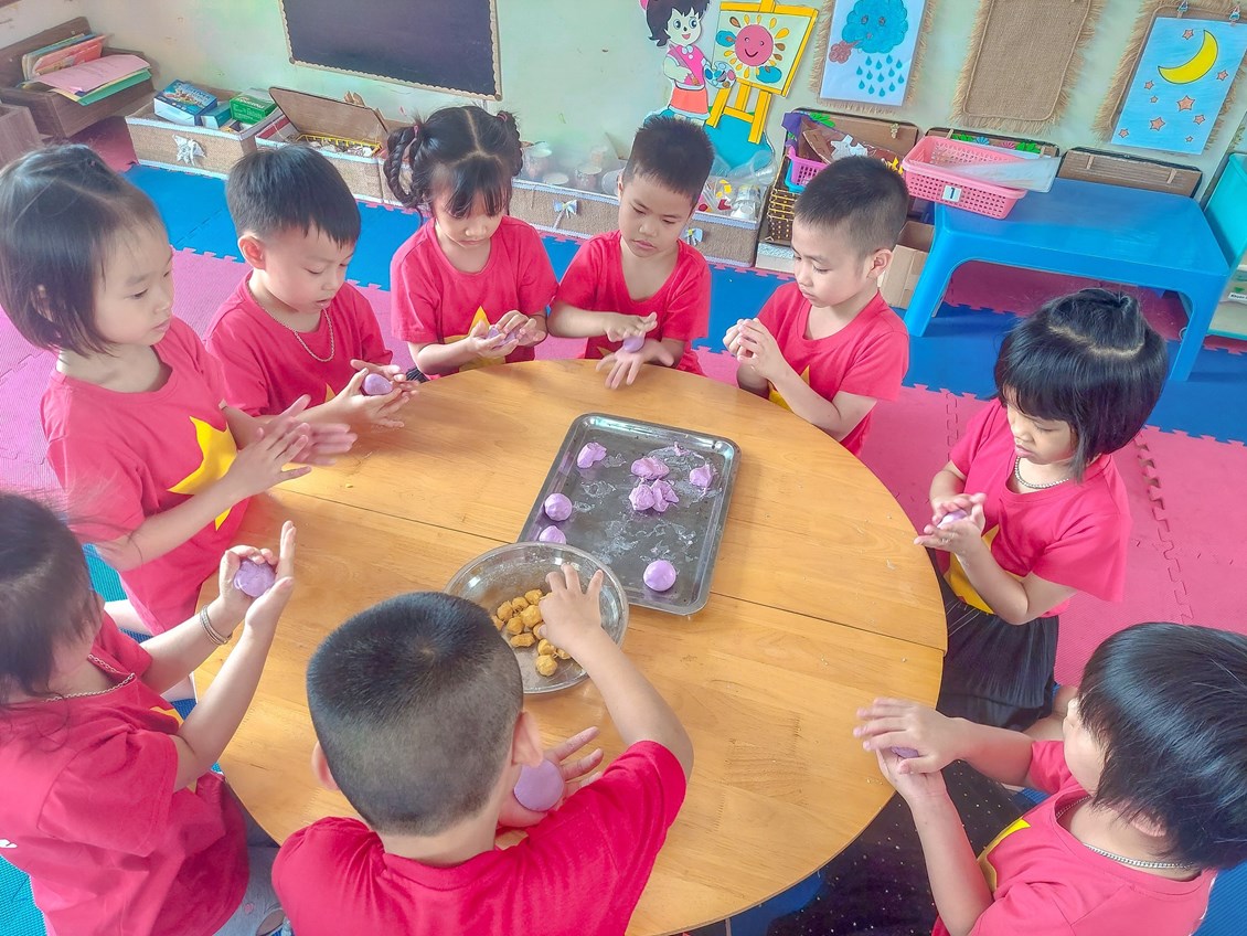 Hoạt động trải nghiệm: Nặn bánh trôi lớp mẫu giáo 5 Tuổi A4
