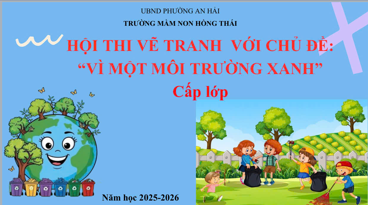 Hội thi “Bé vẽ tranh – Vì một môi trường xanh” của lớp 5T A4 đã diễn ra trong không khí vô cùng hào hứng và sinh động. Ngay từ đầu buổi, các bé được cô giới thiệu về ý nghĩa của môi trường xanh và tầm quan trọng của việc bảo vệ thiên nhiên. Với giấy, màu sáp, bút chì và những ý tưởng ngộ nghĩnh, mỗi bé bắt đầu tạo nên bức tranh theo cách riêng của mình.