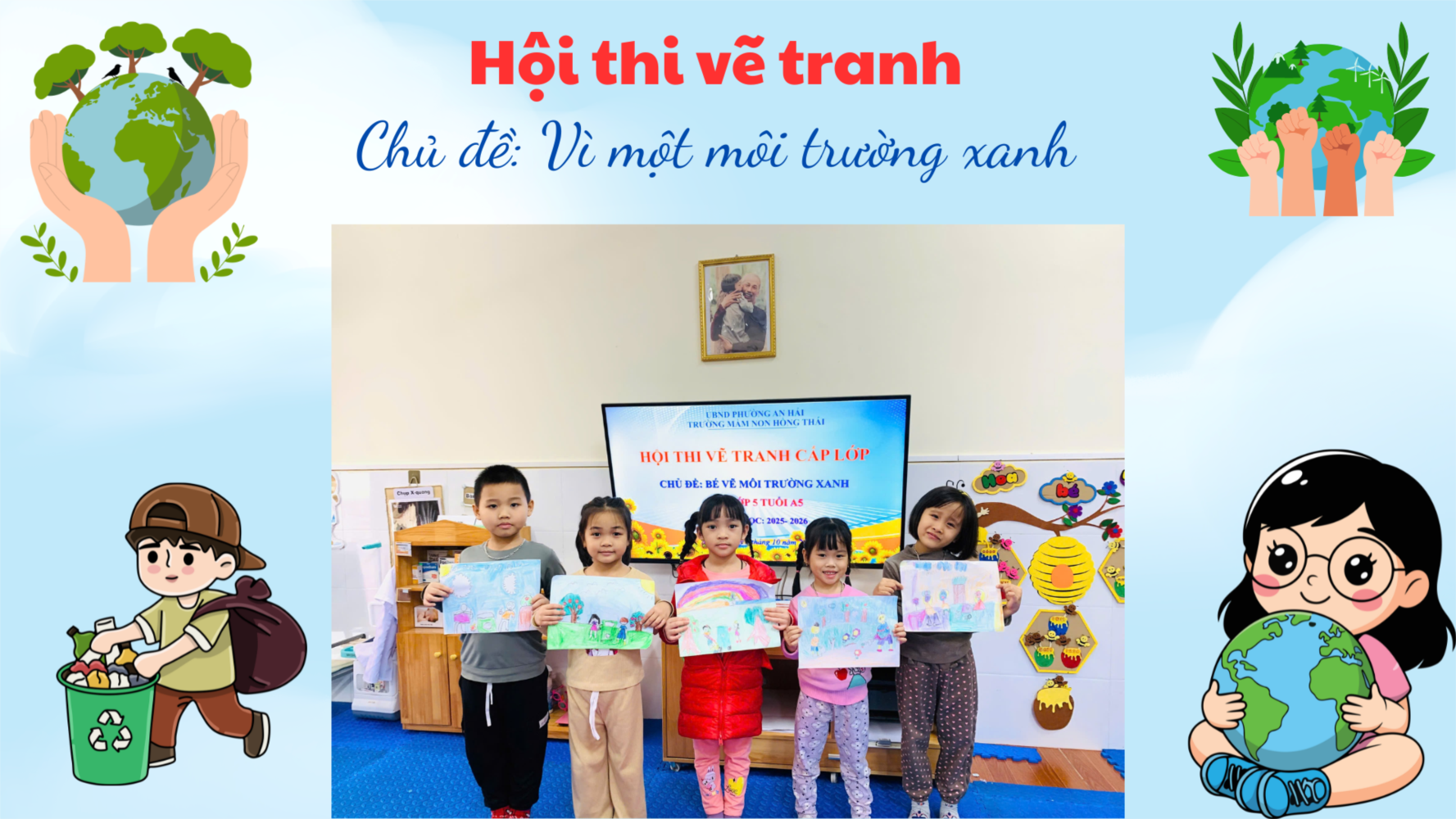 🌱 Hội thi vẽ tranh “Vì một môi trường xanh” – Lớp 5 tuổi A5 🌍💚