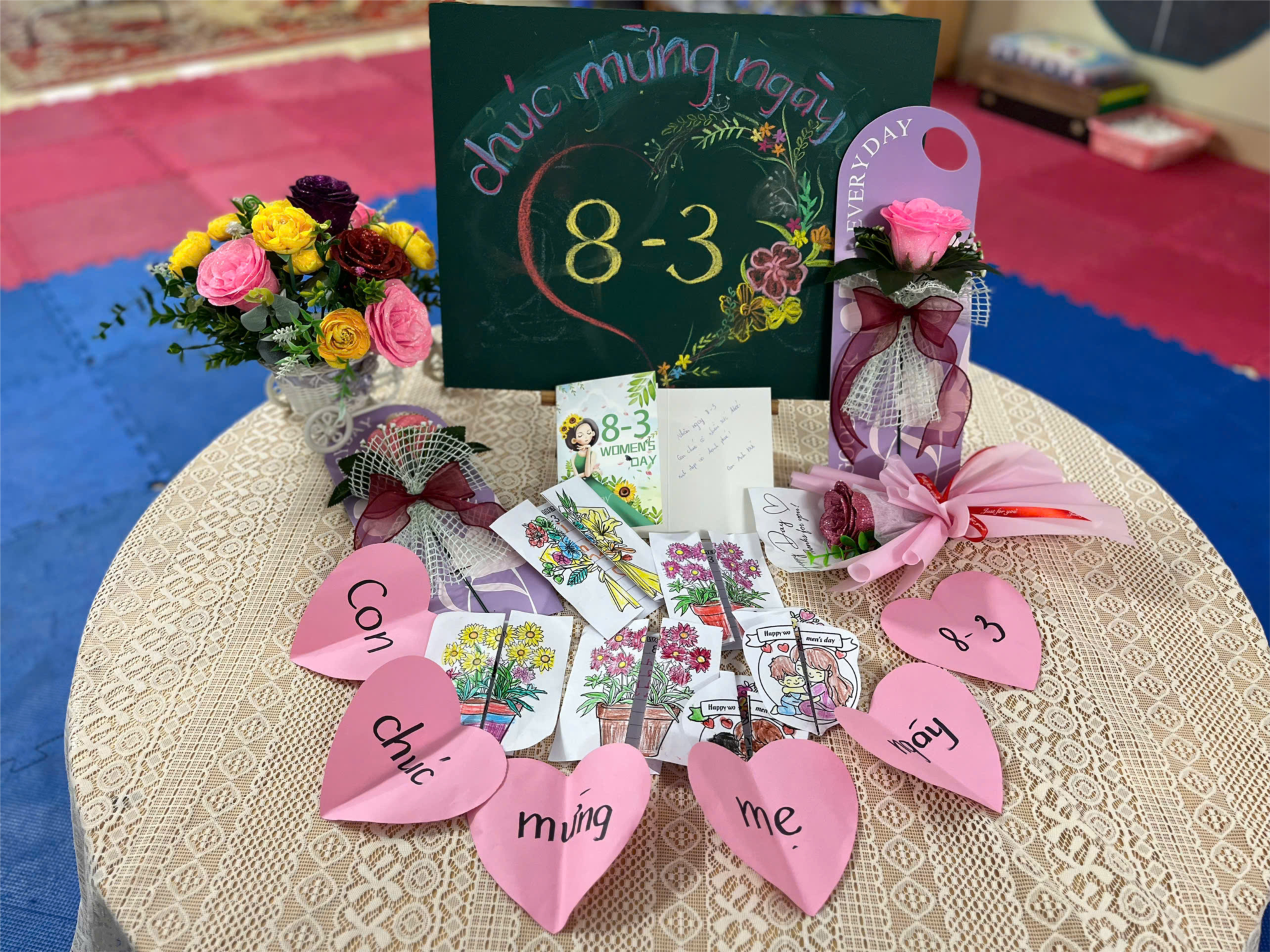 Tại các trường mầm non, ngày 8/3 thường được tổ chức với nhiều hoạt động vui nhộn và ý nghĩa. Các bé được những "Vua đầu bếp nhí" làm những món ăn ngon, làm thiệp tặng bà, tặng mẹ hay vẽ tranh tặng mẹ và cô. Những tấm thiệp nhỏ nhưng chứa đựng tình cảm chân thành của trẻ khiến người nhận vô cùng xúc động.