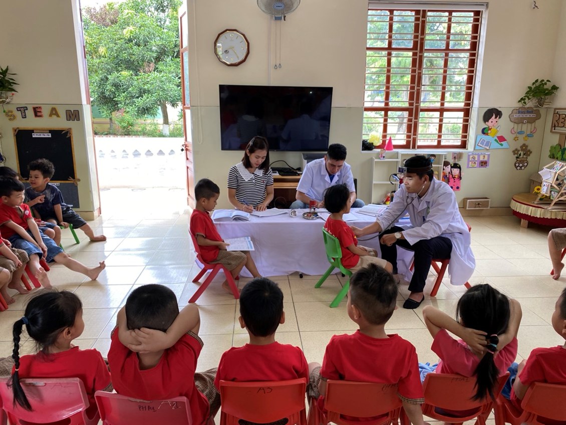 Trạm y tế xã Hồng Thái khám sức khỏe cho trẻ lớp 5A1- Trường mầm non Hồng Thái