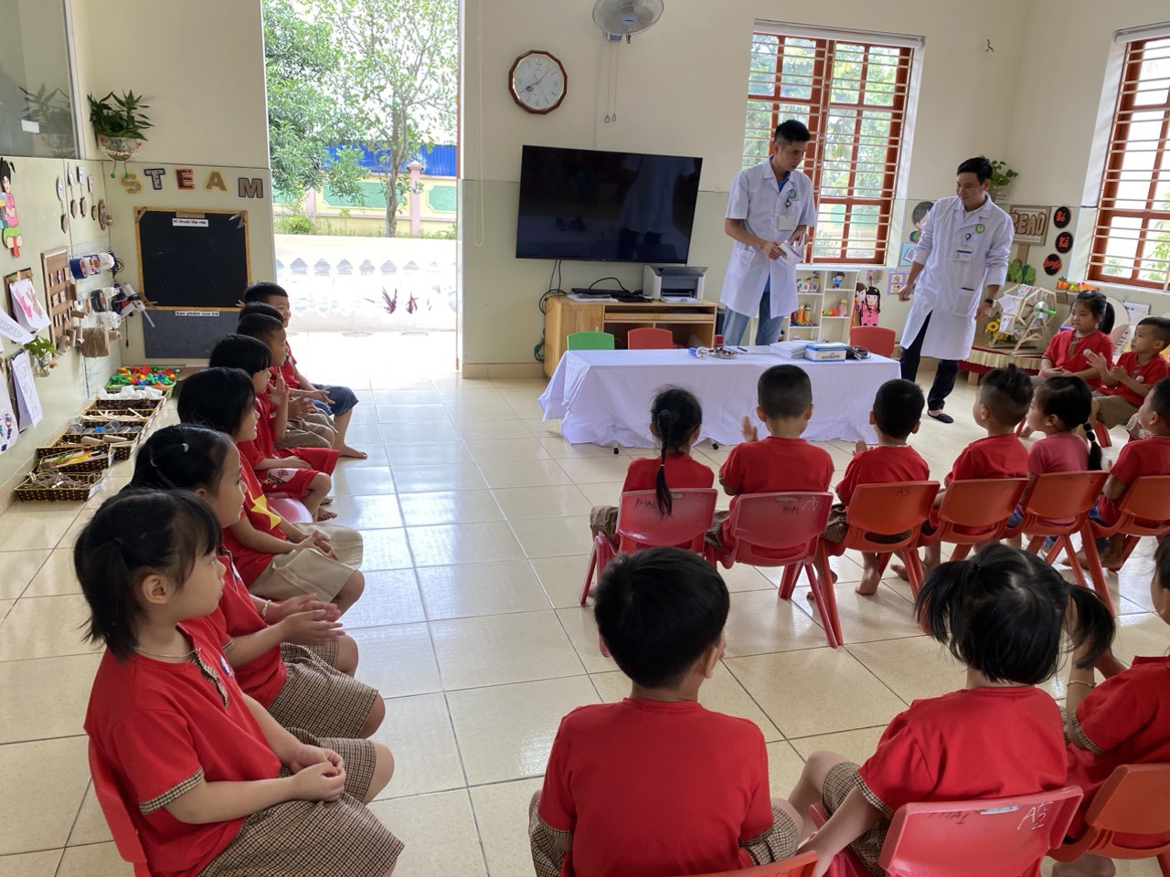 Một trong những việc làm để góp phần cho trẻ mầm non được phát triển toàn diện đó là công tác chăm sóc sức khỏe và nuôi dưỡng trẻ. Muốn cho trẻ được phát triển toàn diện thì trước hết phải quan tâm đến chăm sóc nuôi dưỡng, chăm sóc sức khỏe của trẻ. Ban giám hiệu nhà trường đã phối kết hợp cùng với Trạm y tế xã Hồng Thái tổ chức chăm sóc sức khỏe, khám sức khỏe cho trẻ tại trường.