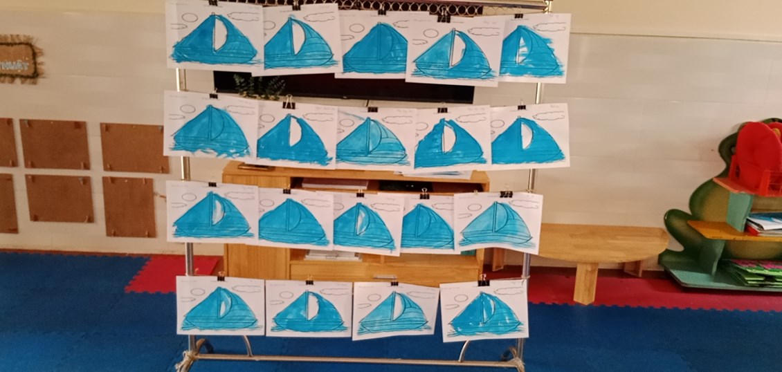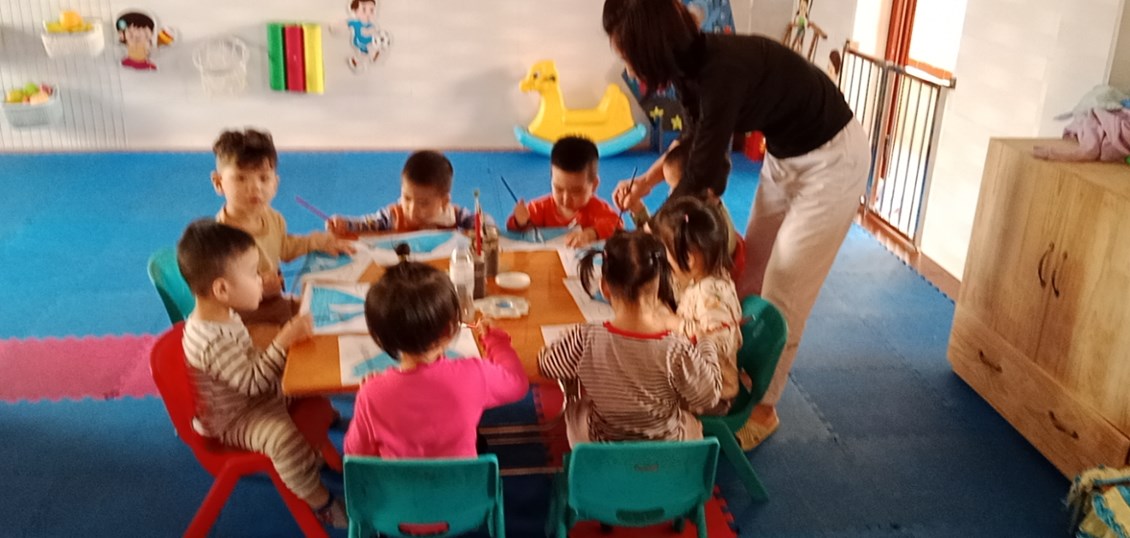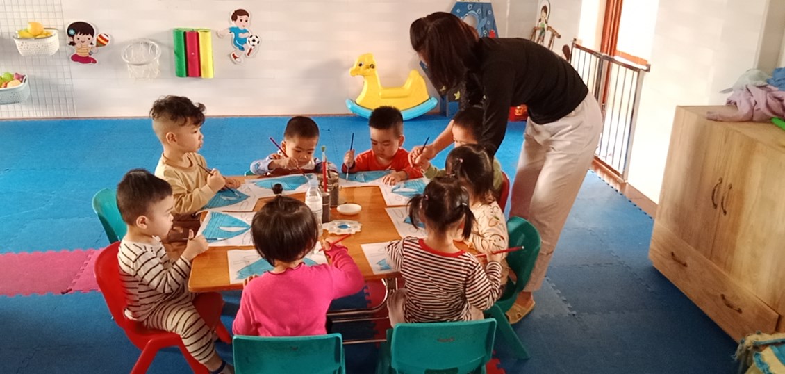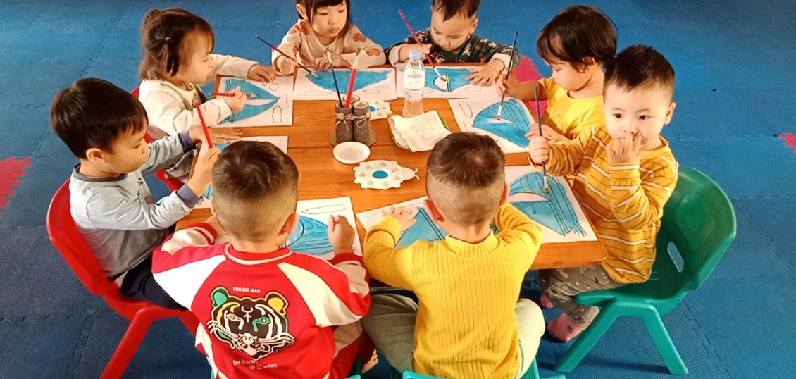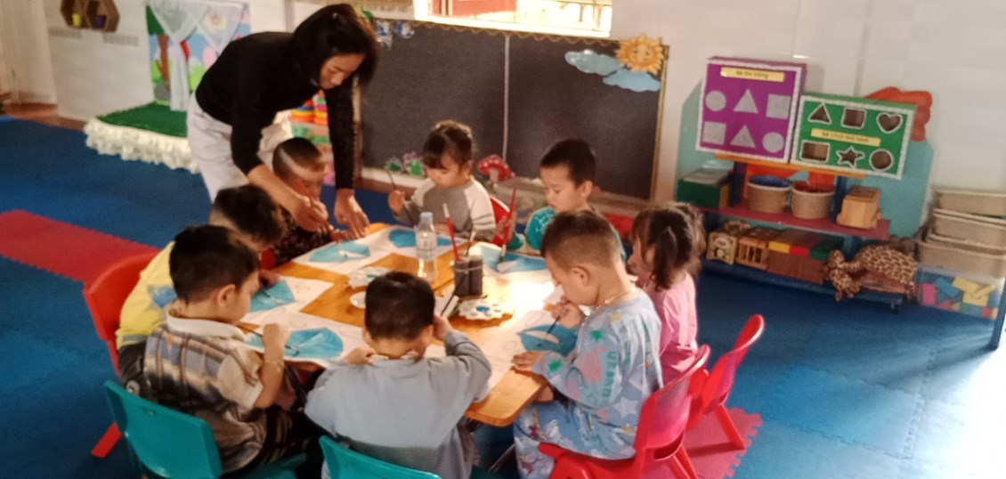 Tiết học thẩm mỹ "Tô màu thuyền buồm" lớp NT1