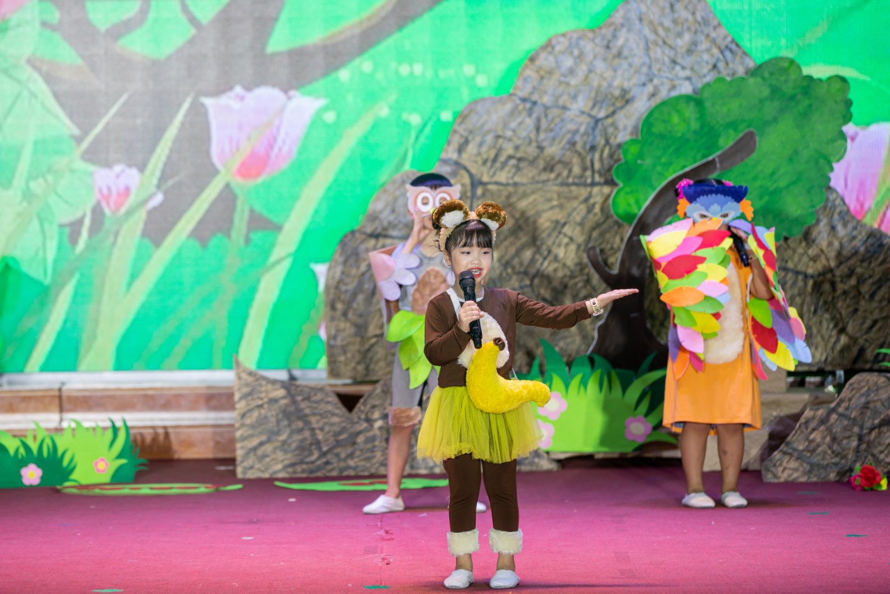 ☘☘☘Trong buổi Sơ kết 3 năm triển khai chương trình "Làm quen tiếng anh" dành cho trẻ mẫu giáo. Trường mầm non Hồng Thái rất tự hào có 2 bạn đại diện khối mẫu giáo 5 tuổi, đặc biệt là bạn Đoàn Thị Thu Hà lớp 5 tuổi A2 với phần thi tài năng vô cùng xuất sắc trong nhân vật khỉ. Bé đã thể hiện sự tự tin, tài năng, sự hiểu biết và nhanh nhẹn linh hoạt của mình trong các phần thi "Tài năng", "Rung Chuông vàng" và phần thi "Chung sức" để góp phần vào thành công chung của đội. Qua sân chơi này tạo cho trẻ cơ hội được giao lưu, rèn luyện trí thông minh và phát triển năng khiếu của bản thân. Sau đây là một số hình ảnh của bé trong các phần thi❤❤❤