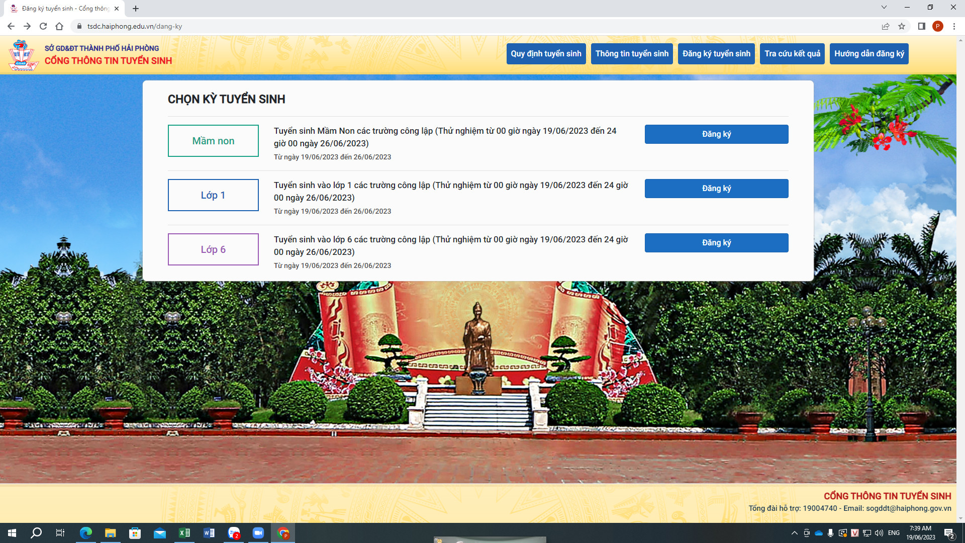 Hiện nay Sở GD&ĐT mở thử nghiệm tuyển sinh trực tuyến từ ngày 19/06 đến ngày 26/06, đề nghị các trường thông báo đến phụ huynh học sinh đăng nhập vào cổng thông tin tại địa chỉ dưới đây để đăng ký tuyển sinh